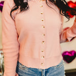 Button Up Round Neck Sweater Cardigan - Ballet