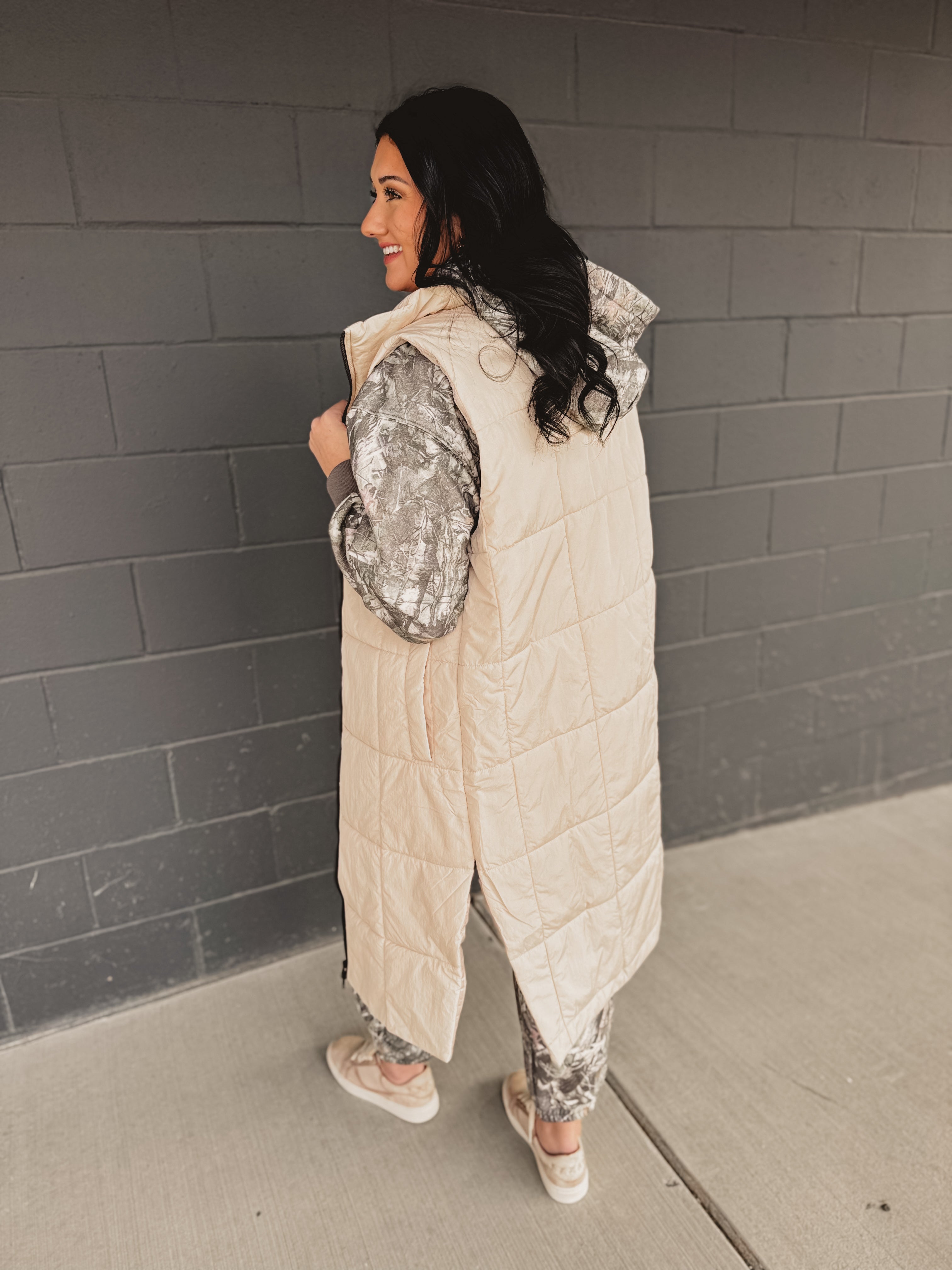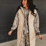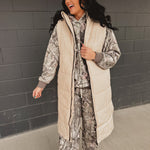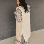Quilted Longline Puffer Vest - Sand