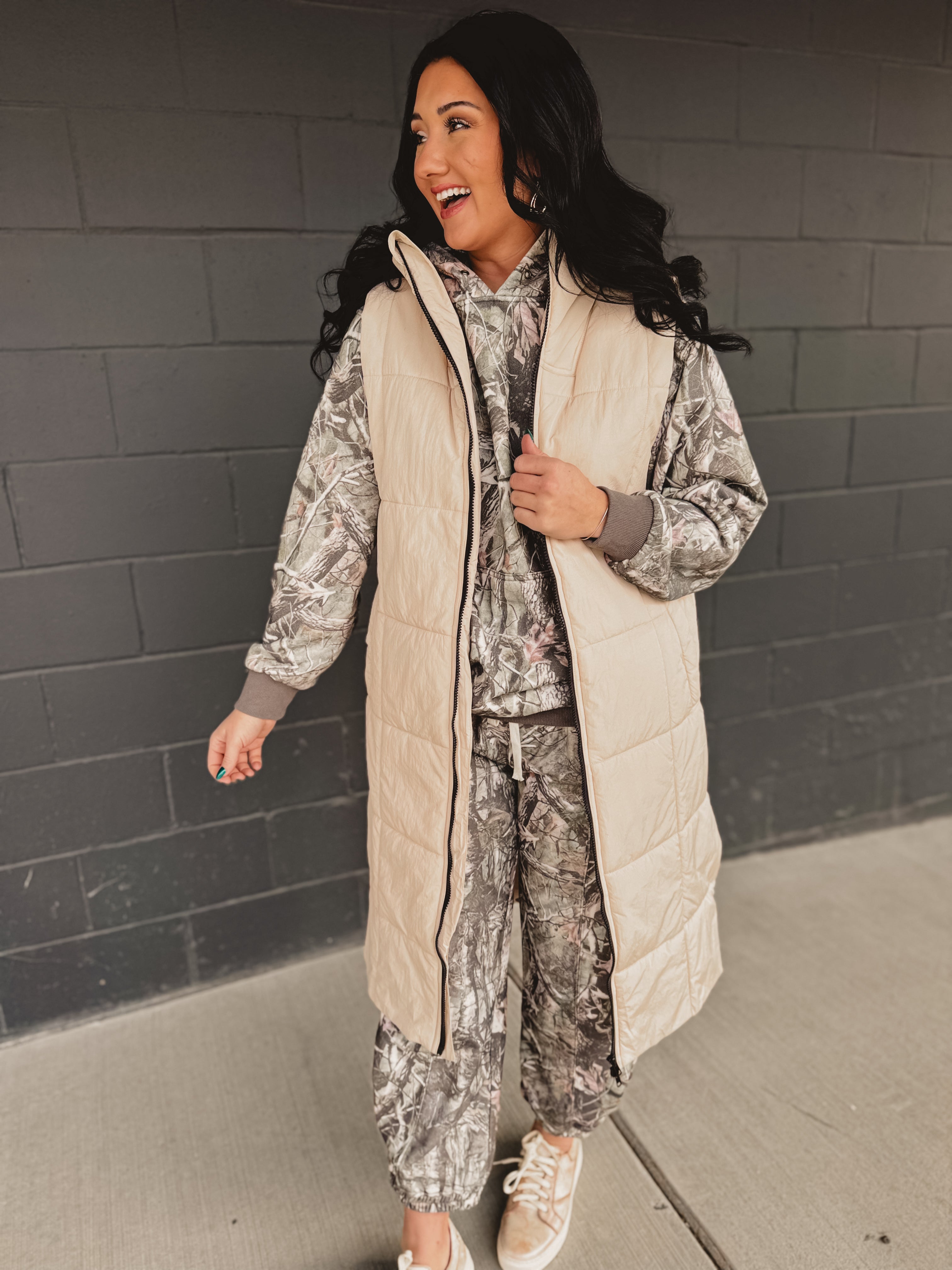 This longline puffer vest is a modern essential for effortless layering, offering lightweight warmth with a sleek, everyday silhouette. The neutral ash tone makes it endlessly versatile for fall and winter styling.