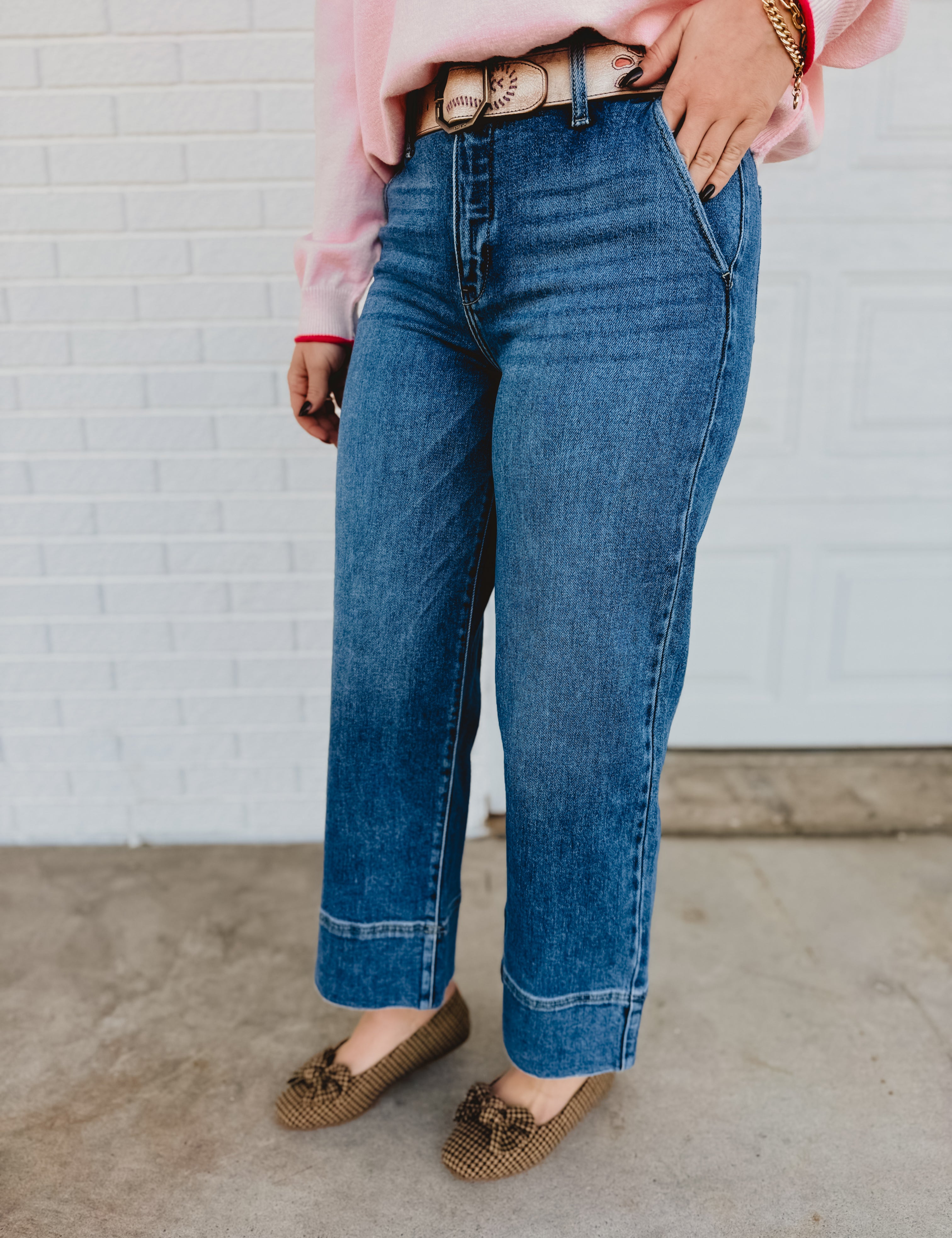 Mica Super High Rise Cuffed Hem Wide Leg Jean - Capri Blue