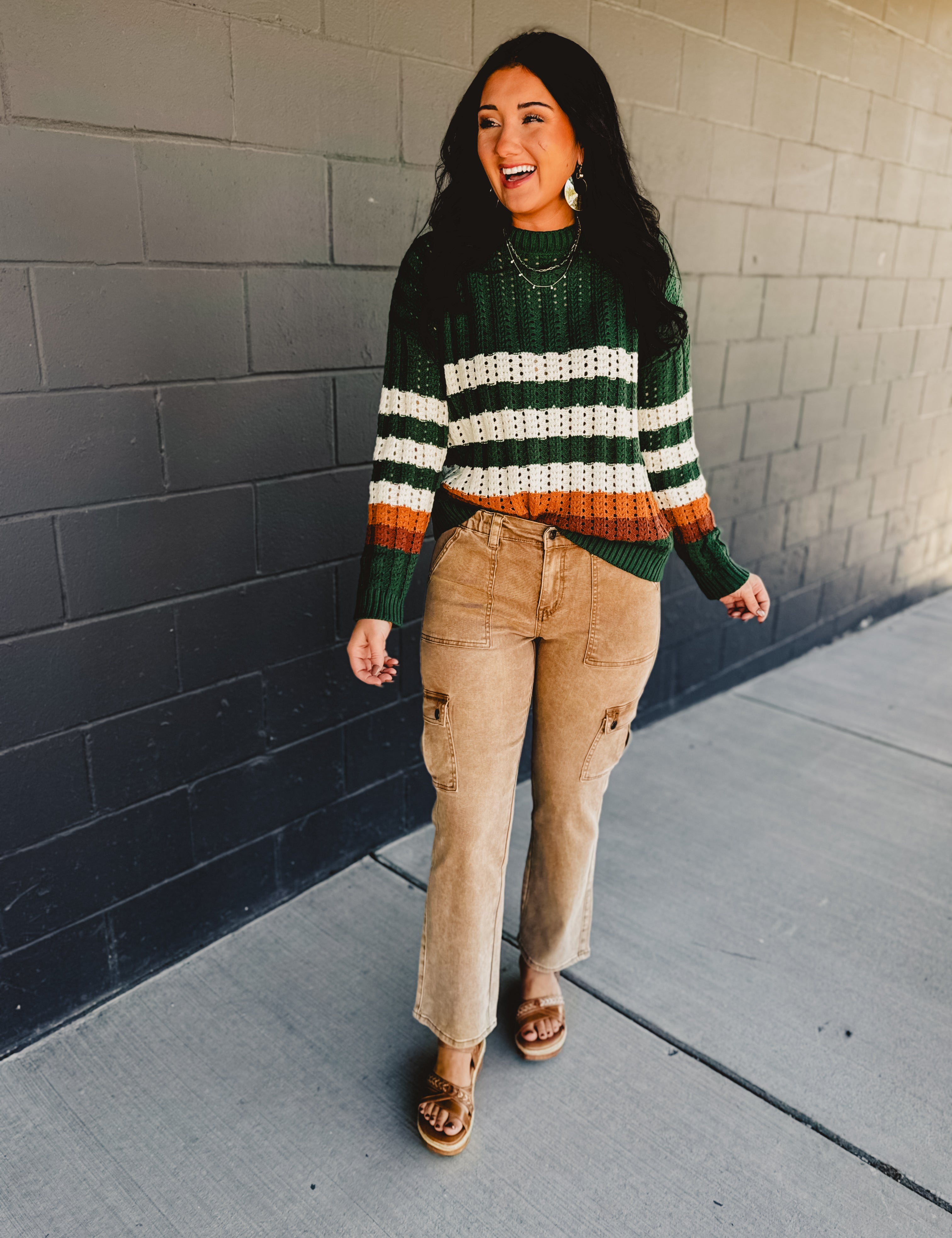 High Rise Stretch Cargo Denim Jeans - Toffee