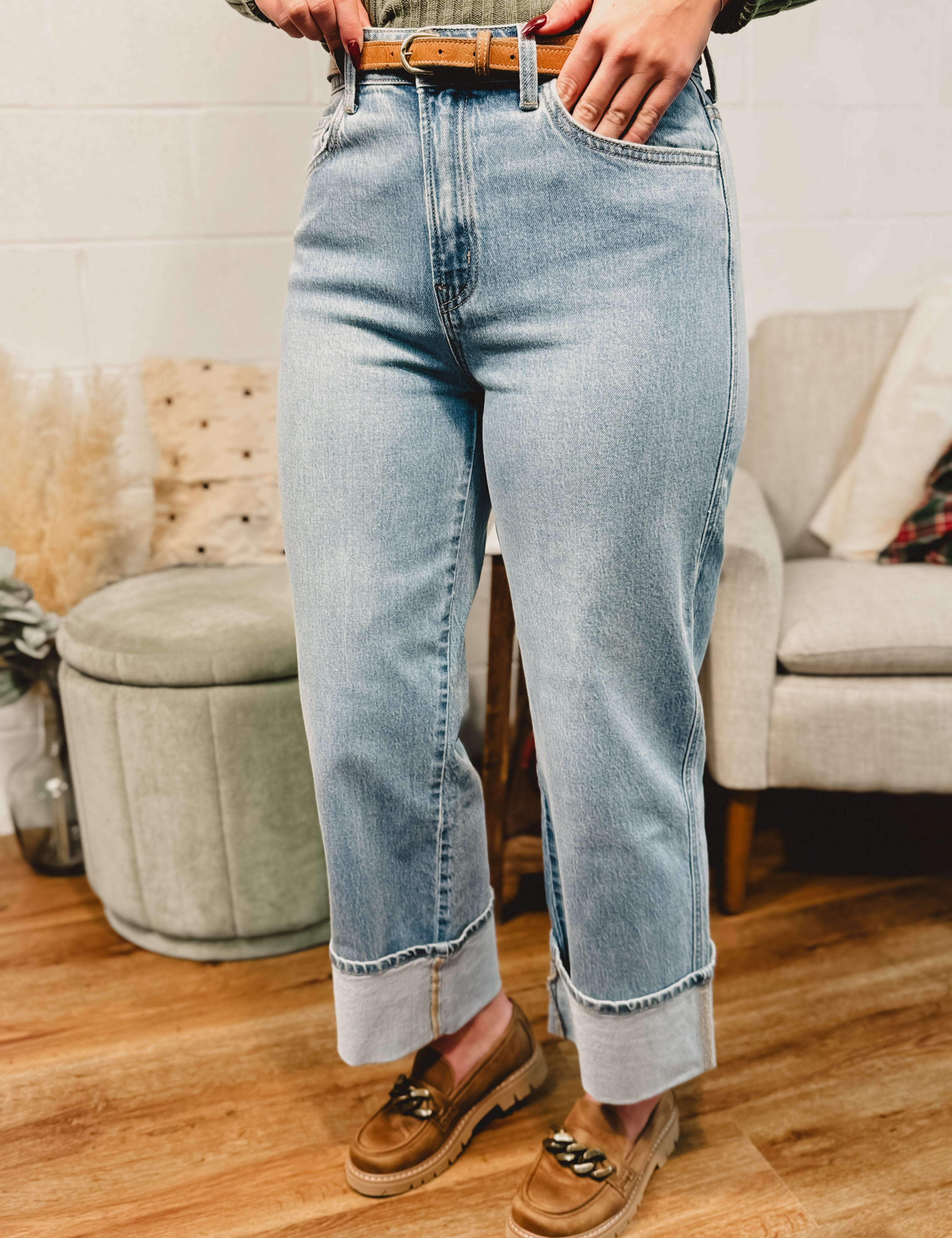Gabby Super High Rise Cuffed Baggy Straight Jean - Light
