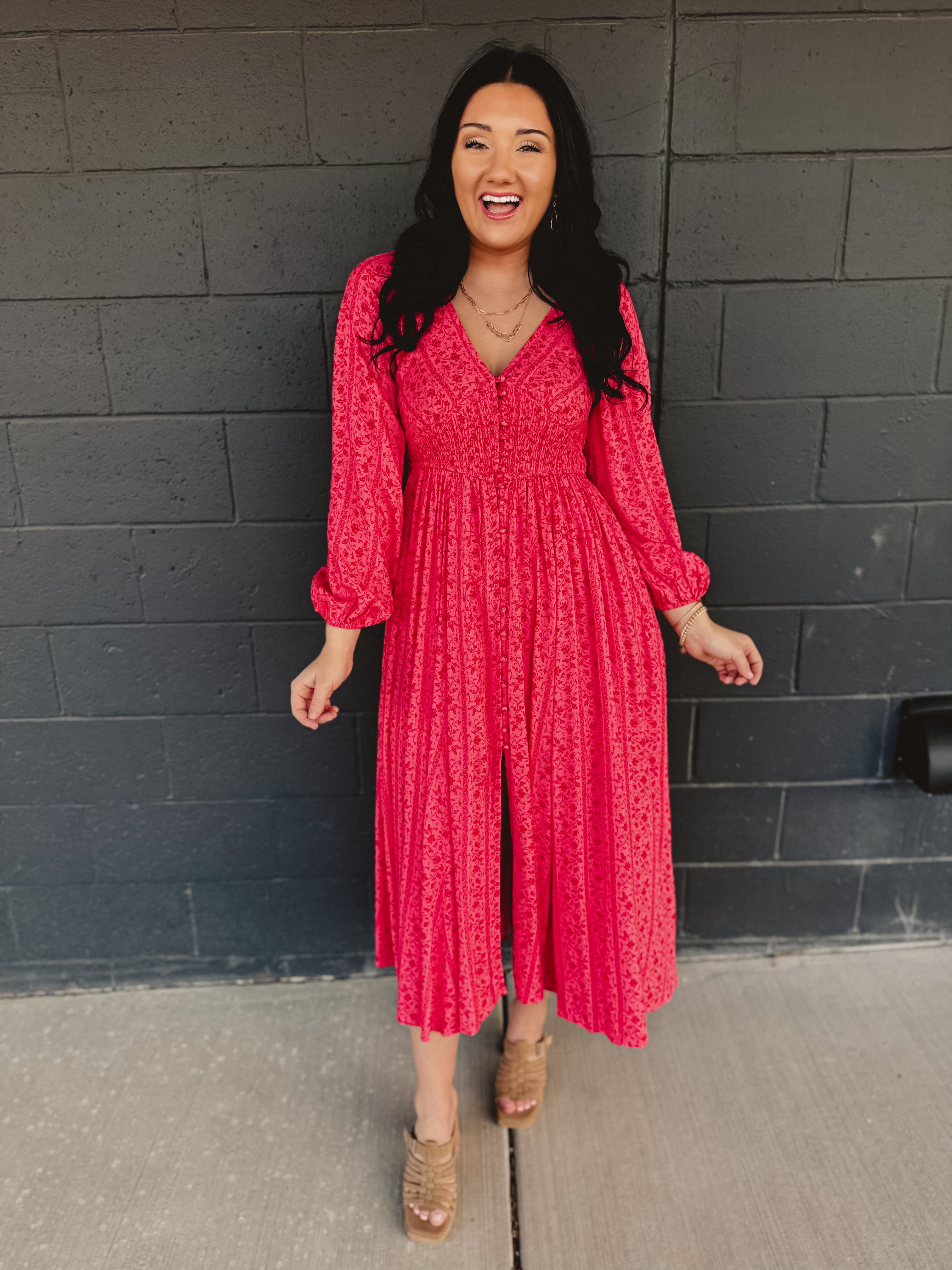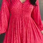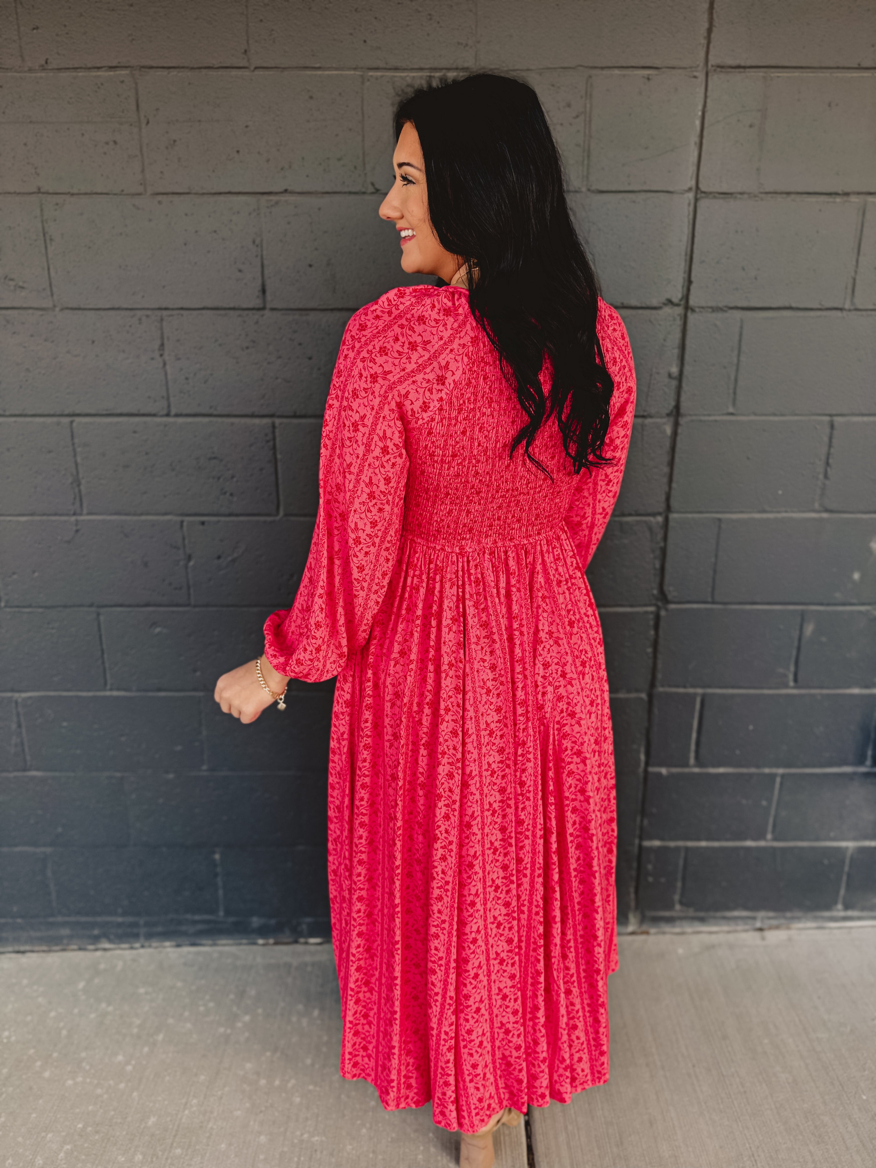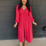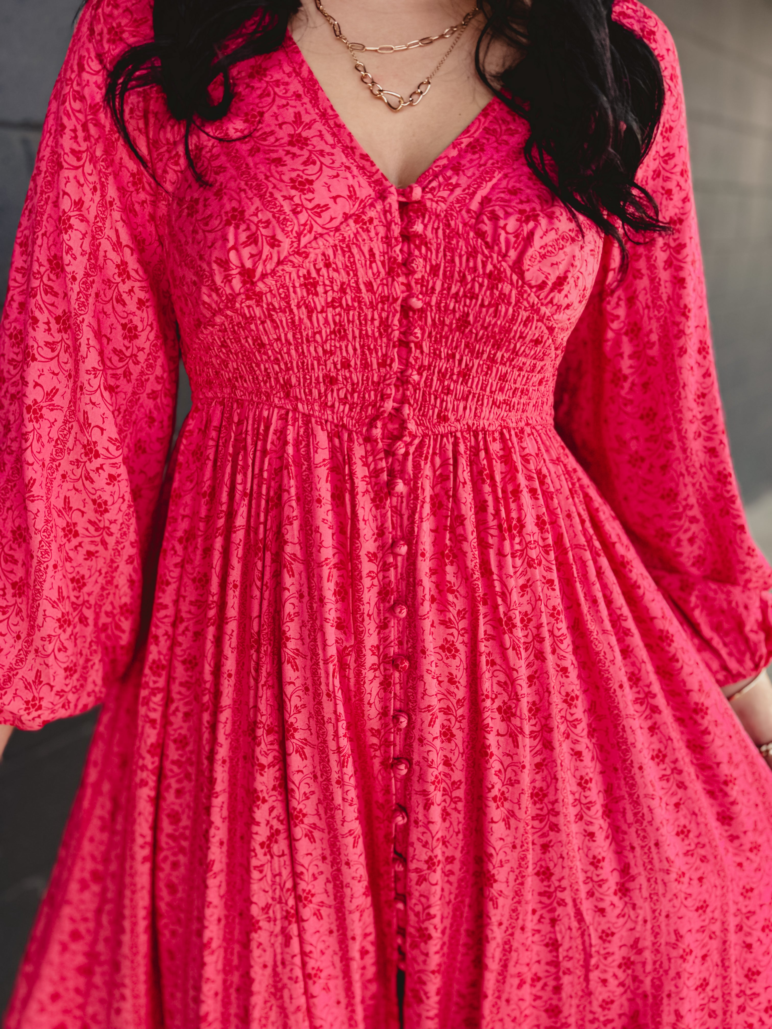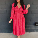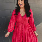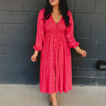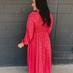 Smocked Button Down Long Sleeve Maxi Dress - Cherry Tomato