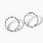 Cubic Zirconia Hoop Post Drop Earrings - Silver