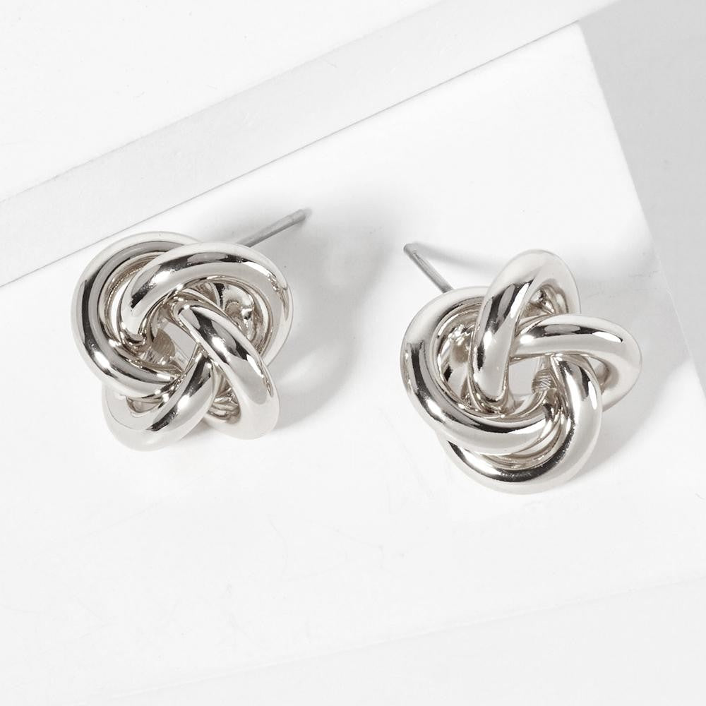 Knotted Stud Earrings - Silver - Lace and Grace Boutique