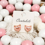 Puffy Heart Stud Earrings - Pink