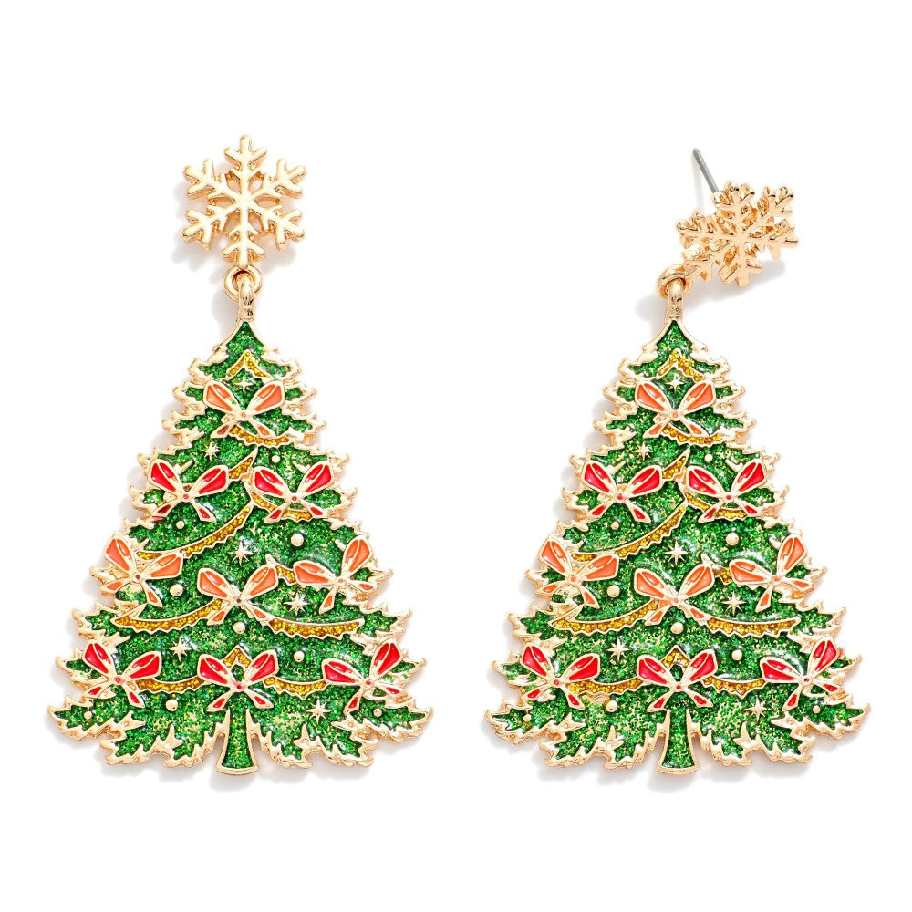 Snowflake & Glitter Christmas Tree Drop Earrings