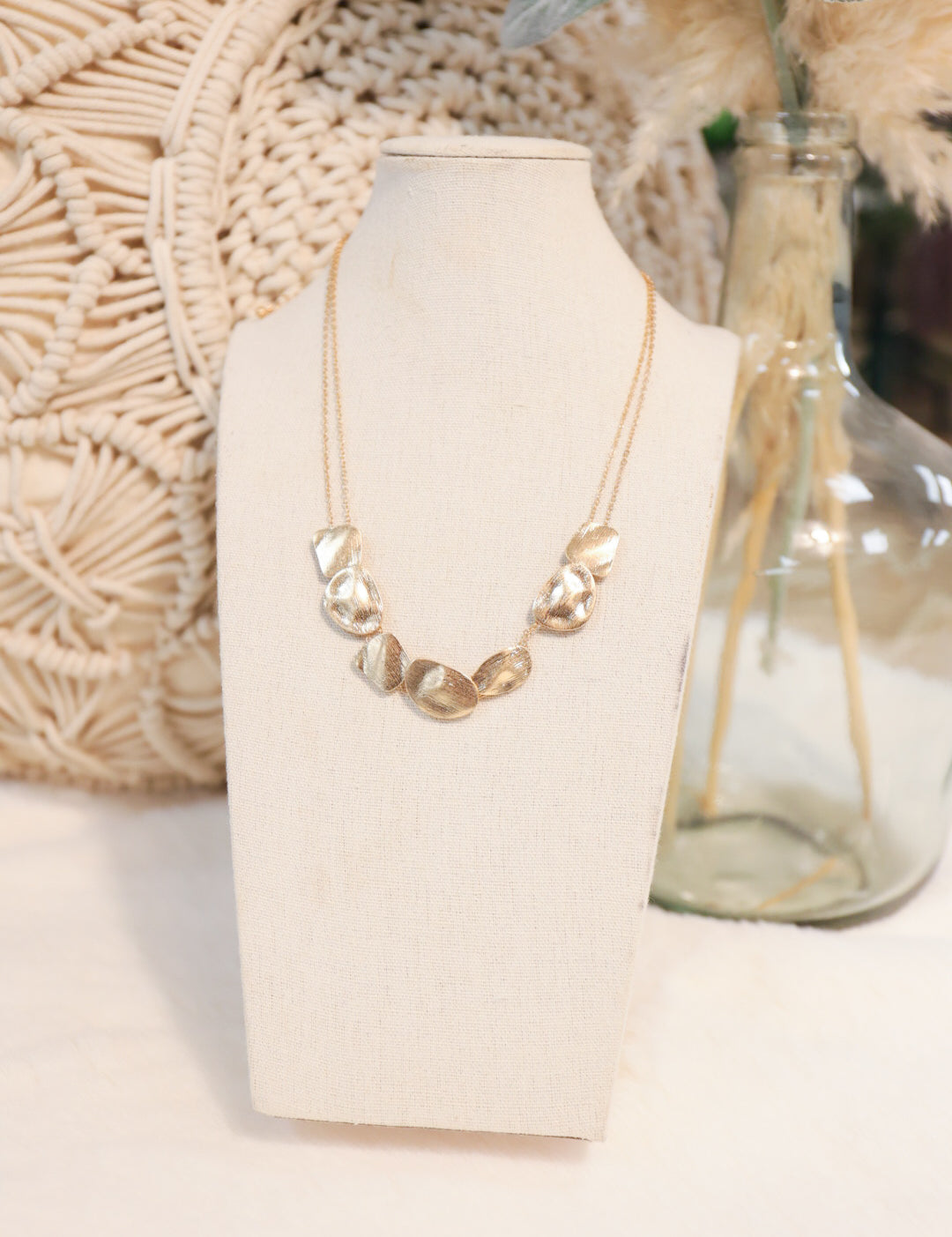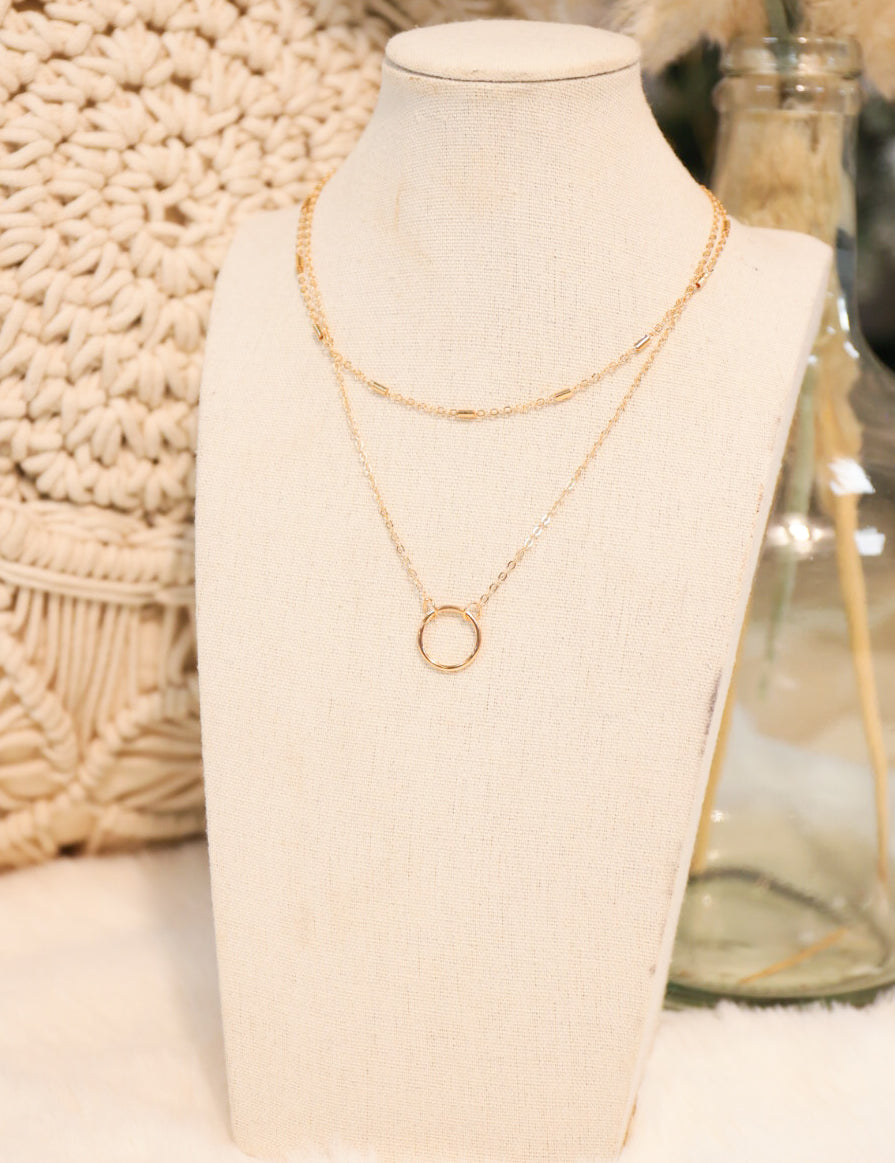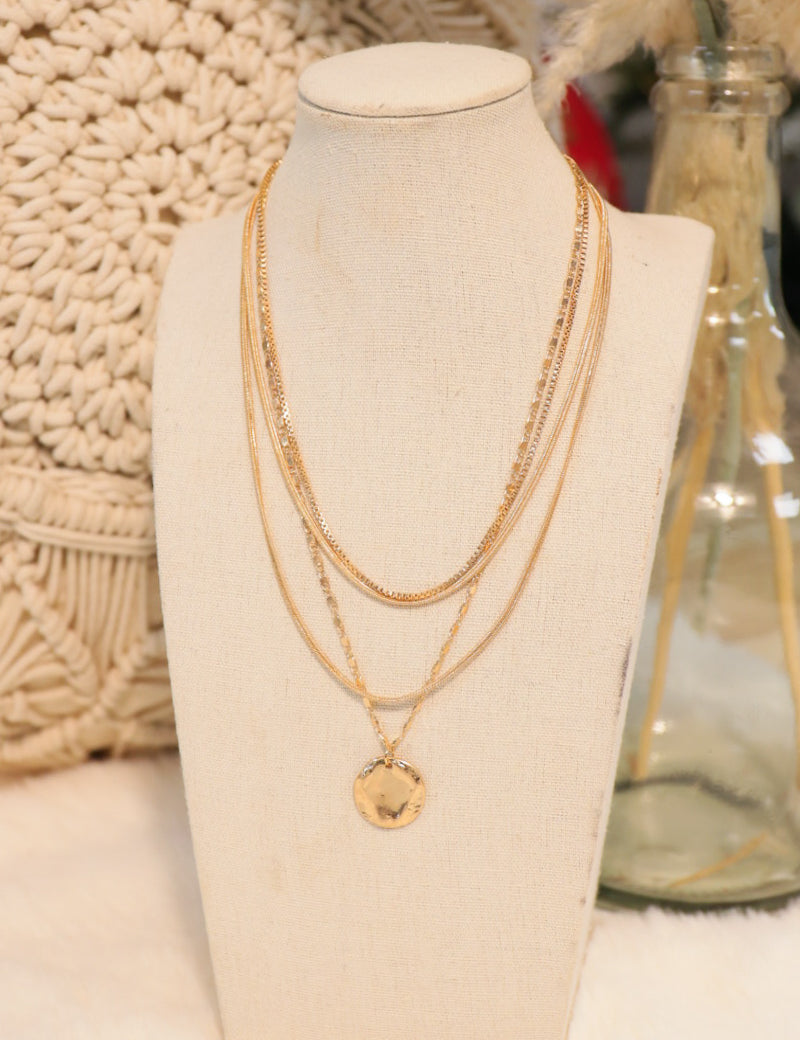 Hammered Circle Pendant Chain Layered Necklace - Gold