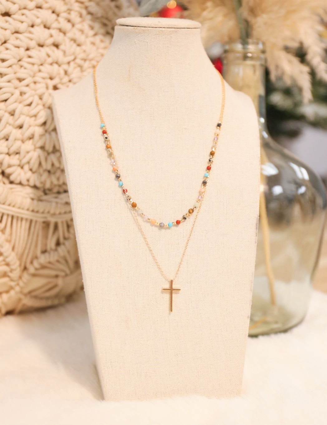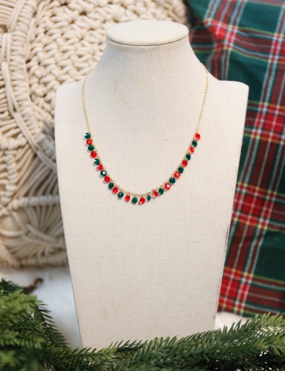 Dainty Rhinestone Charm Detail Necklace - Red/Green