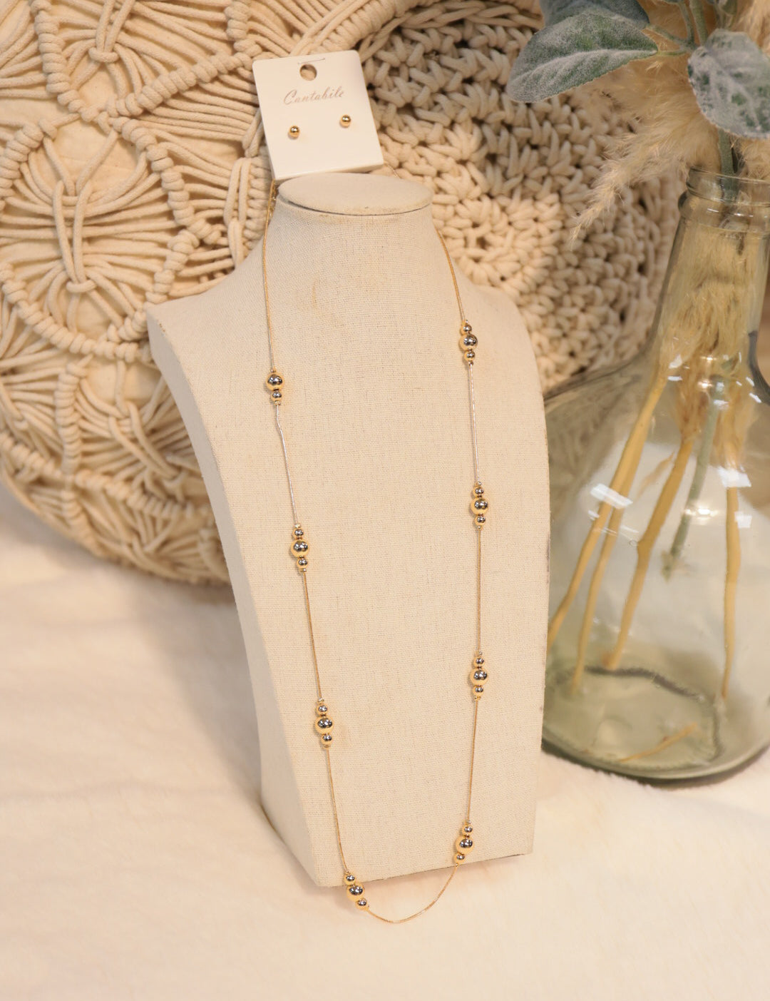 Bead Cluster Snake Chain Necklace & Stud Earring Set