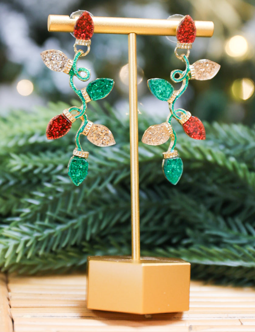 Glitter Christmas Lights Drop Earrings - Green Multi