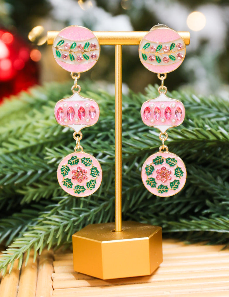Linked Vintage Ornament Post Drop Earrings - Pink