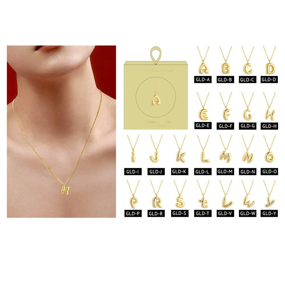 Chain Link Necklace Featuring Metal Tone Bubble Initial Pendant