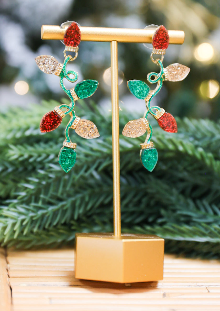 Glitter Christmas Lights Drop Earrings - Green Multi