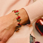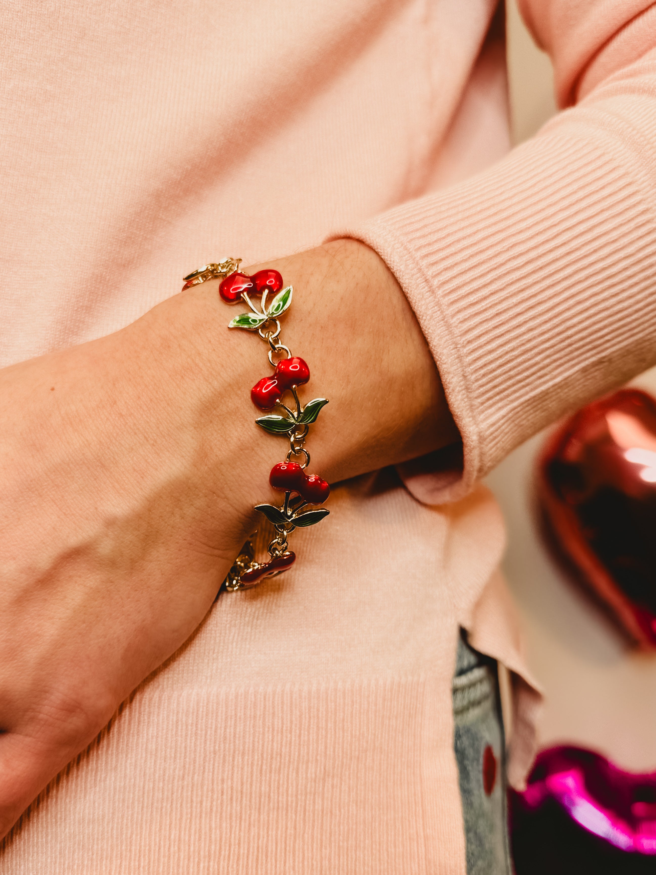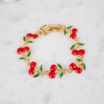 A playful and charming bracelet that adds a pop of color to any outfit. The linked enamel cherries create a fun, lightweight statement piece perfect for everyday wear.