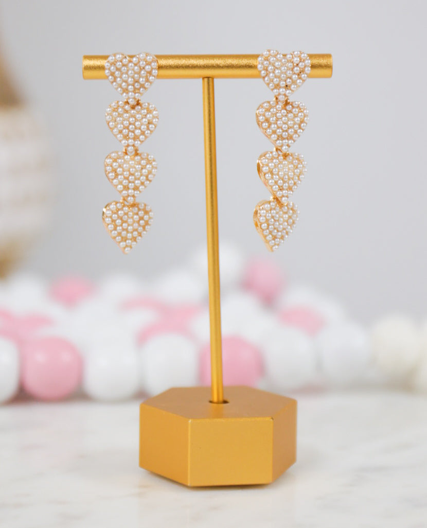 Linked Pearl Heart Post Drop Earrings