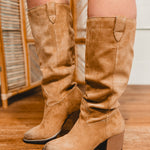 The Roxanne Knee High Western Bucket Boot - Latte