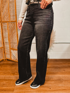 Kancan High Rise Wide Leg Jean - Black