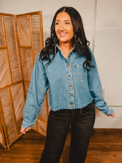 Denim Button Up Long Sleeve Top