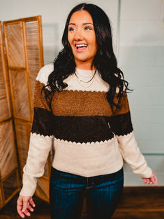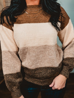 Knit Color Blocked Sweater - Mocha Combo