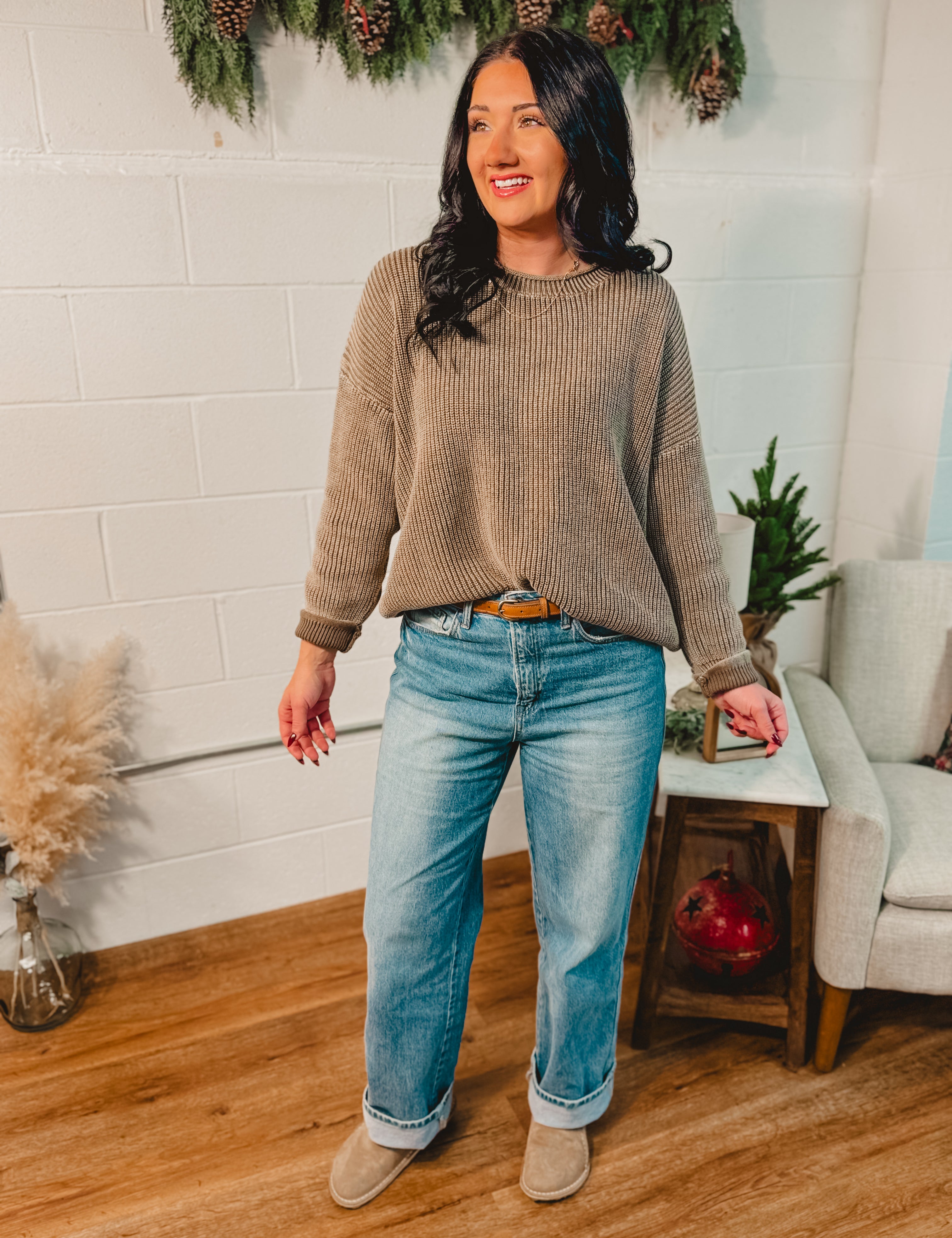 Edge Accent Mock Neck Knit Sweater - Oatmeal