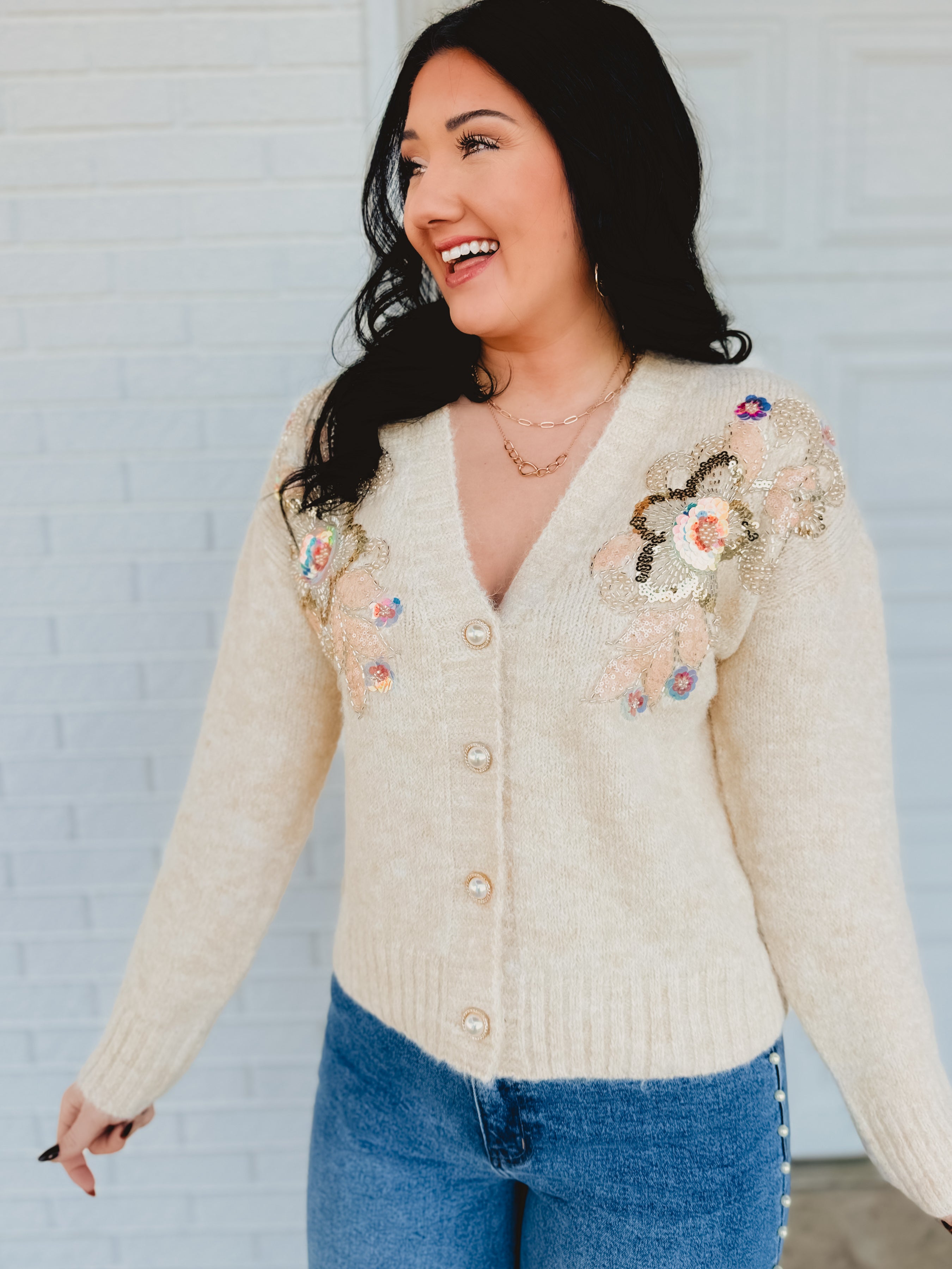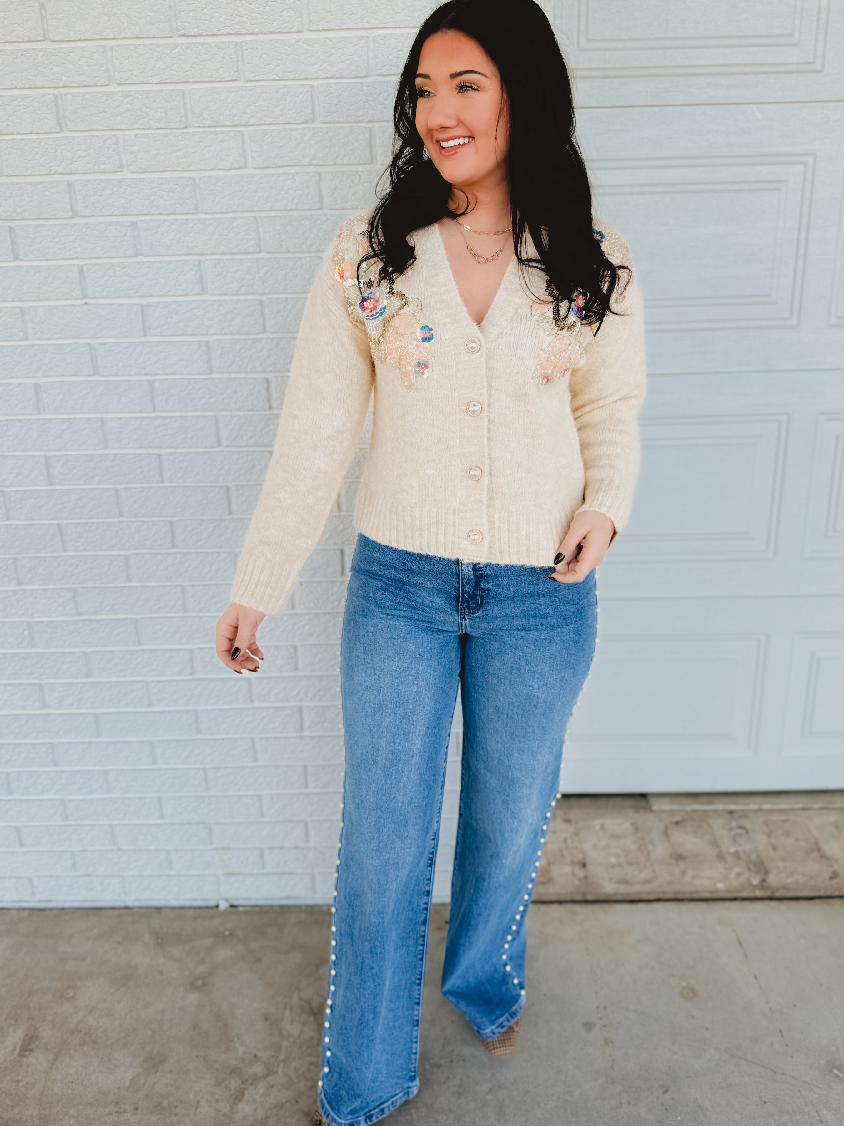 This soft, romantic cardigan adds an elevated touch to your everyday layering with delicate embellishments and a cozy knit feel. Dress it up or down for effortless charm all season long.