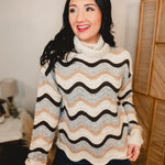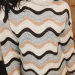 Wave Striped Turtle Neck Sweater - Grey/Taupe