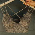 This scalloped floral crochet lace bralette in olive combines delicate detailing with a comfy fit, perfect for layering or wearing as a chic stand-alone piece.