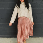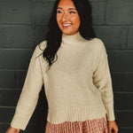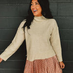 Mock Neck Long Sleeve Knit Sweater - Khaki