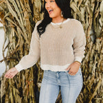 Stay effortlessly stylish in this khaki textured two-toned sweater, a versatile piece made for comfort and everyday wear!
