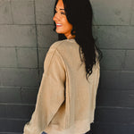 Cozy and casual, this taupe thermal long sleeve pullover offers soft comfort and effortless style — perfect for layering through the cooler seasons!