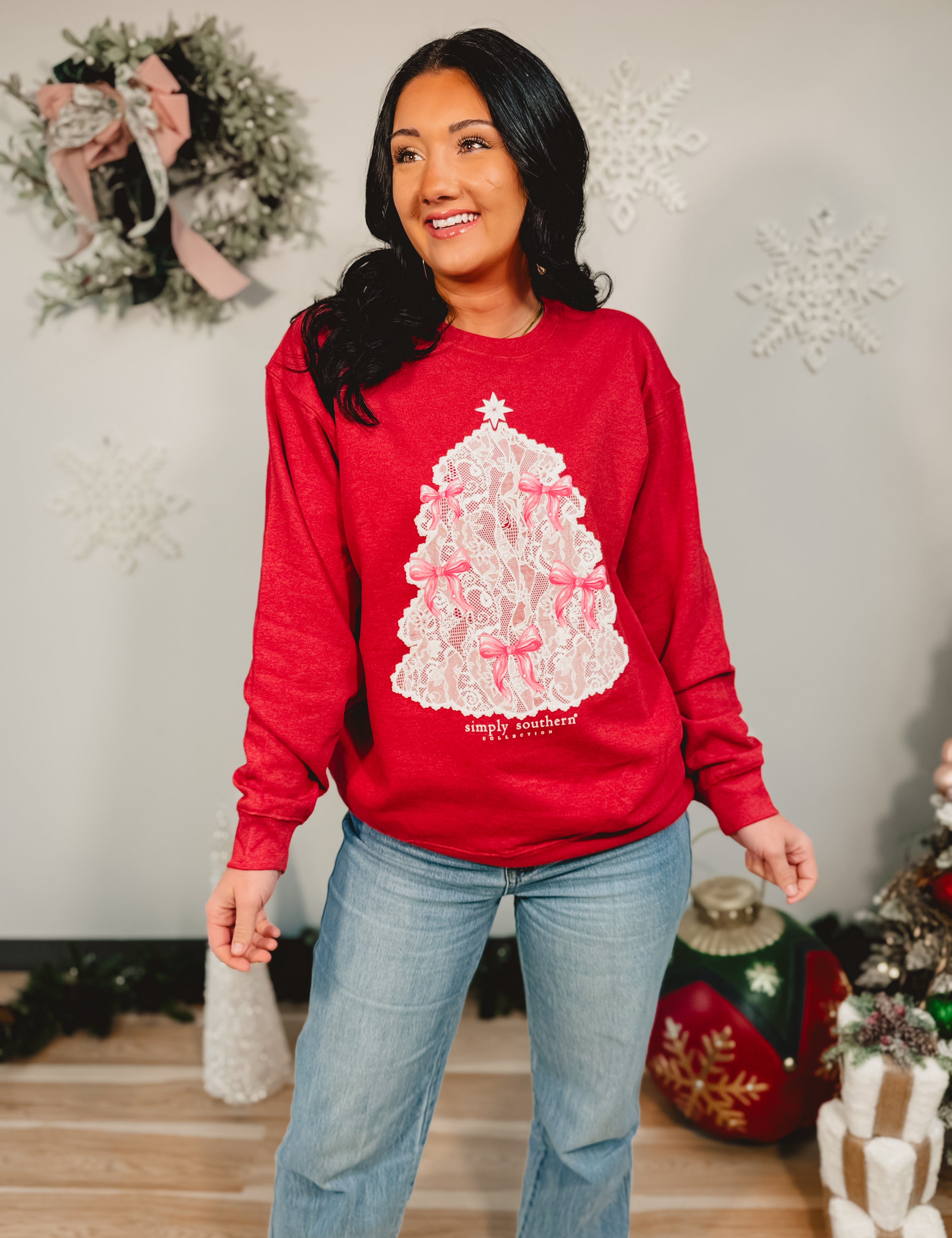 Simply Southern Tree Lace Crewneck Sweatshirt - Red