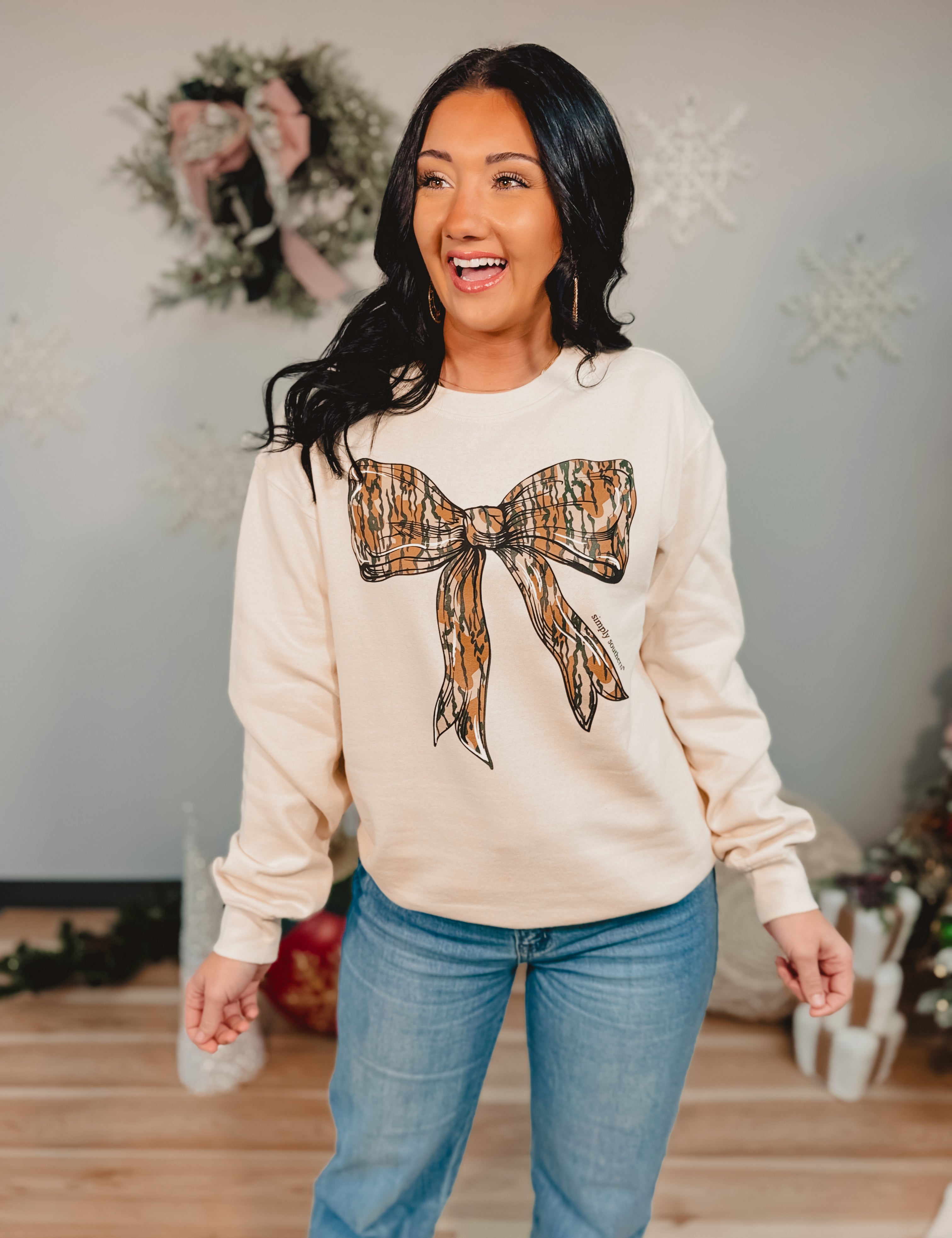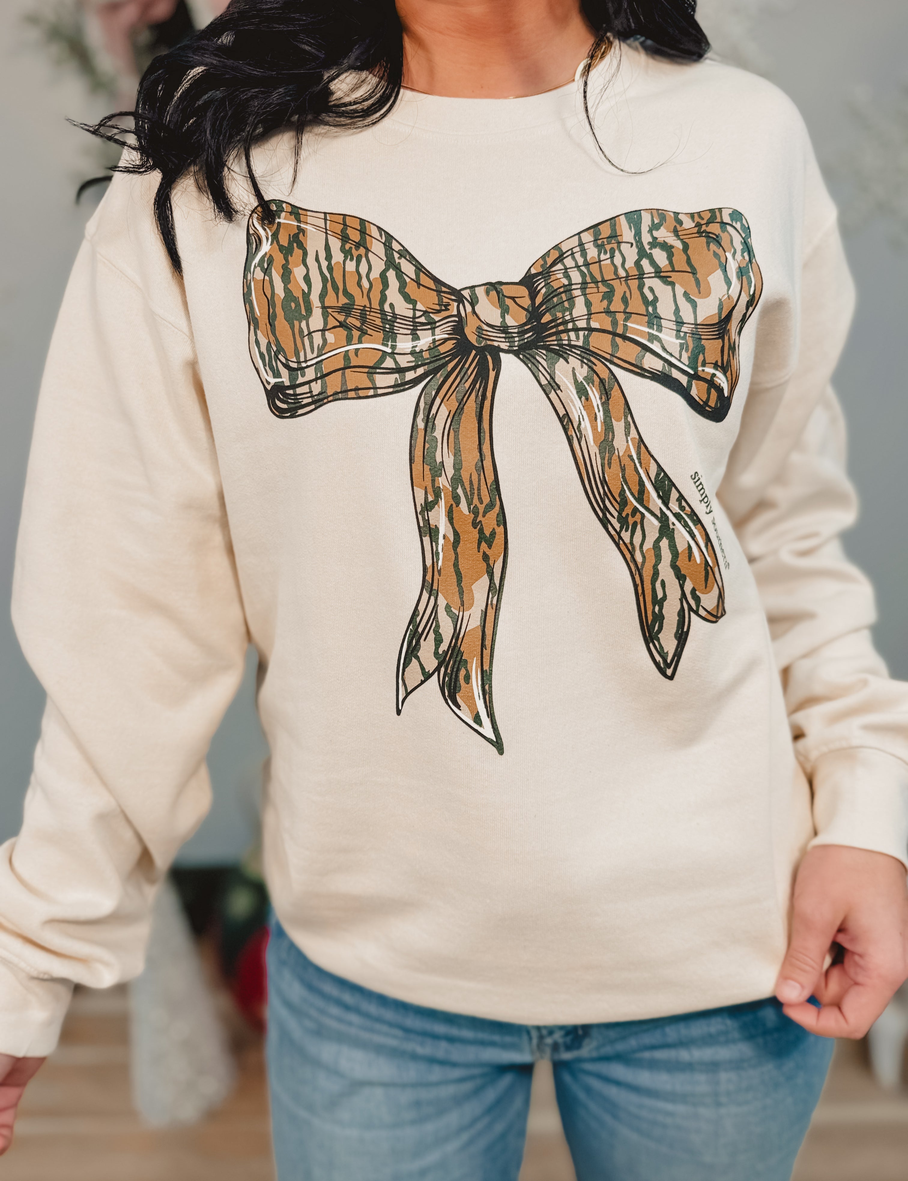 Simply Southern Camo Bow Crewneck Sweatshirt - Sand