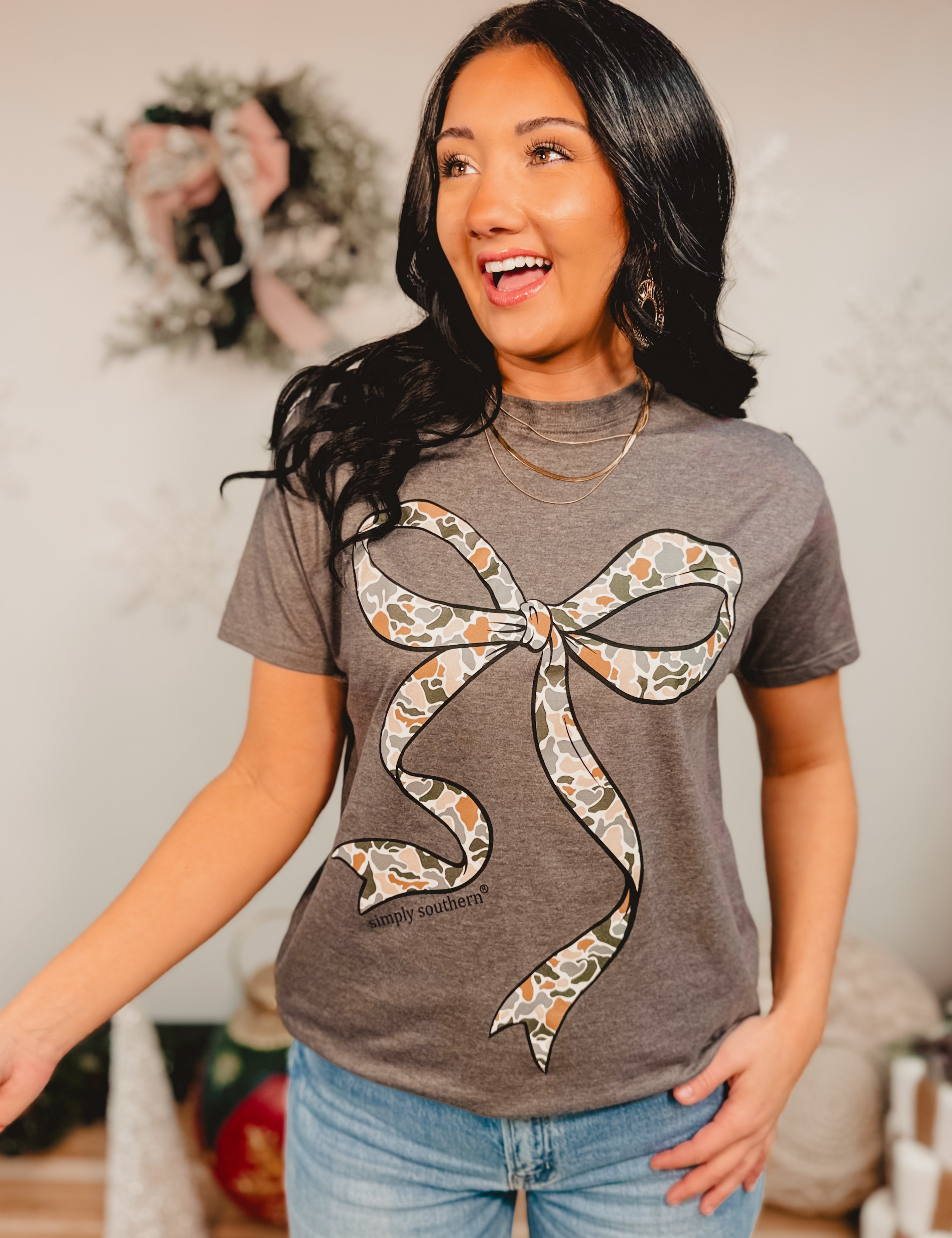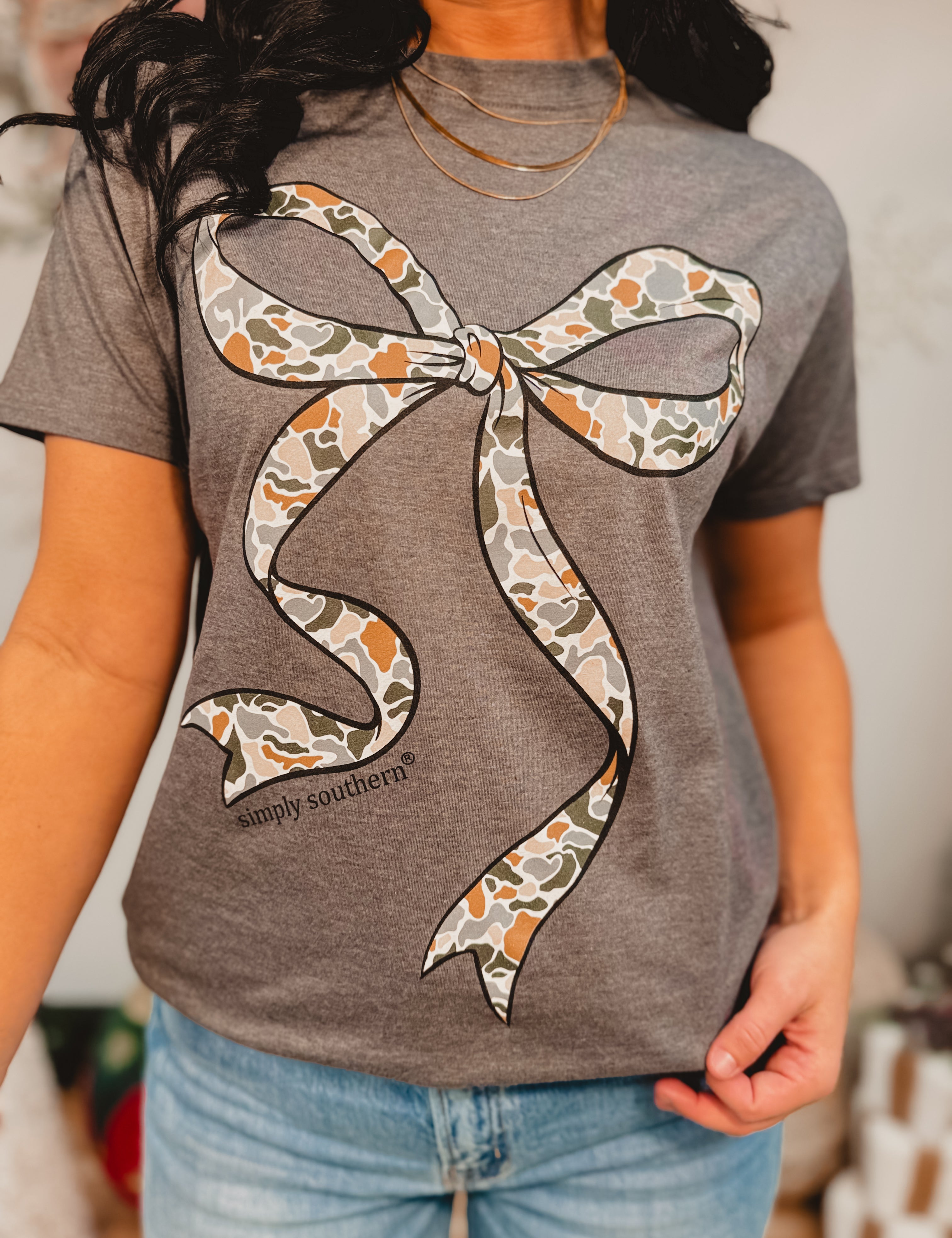 Simply Southern Camo Bow Tee - Iron
