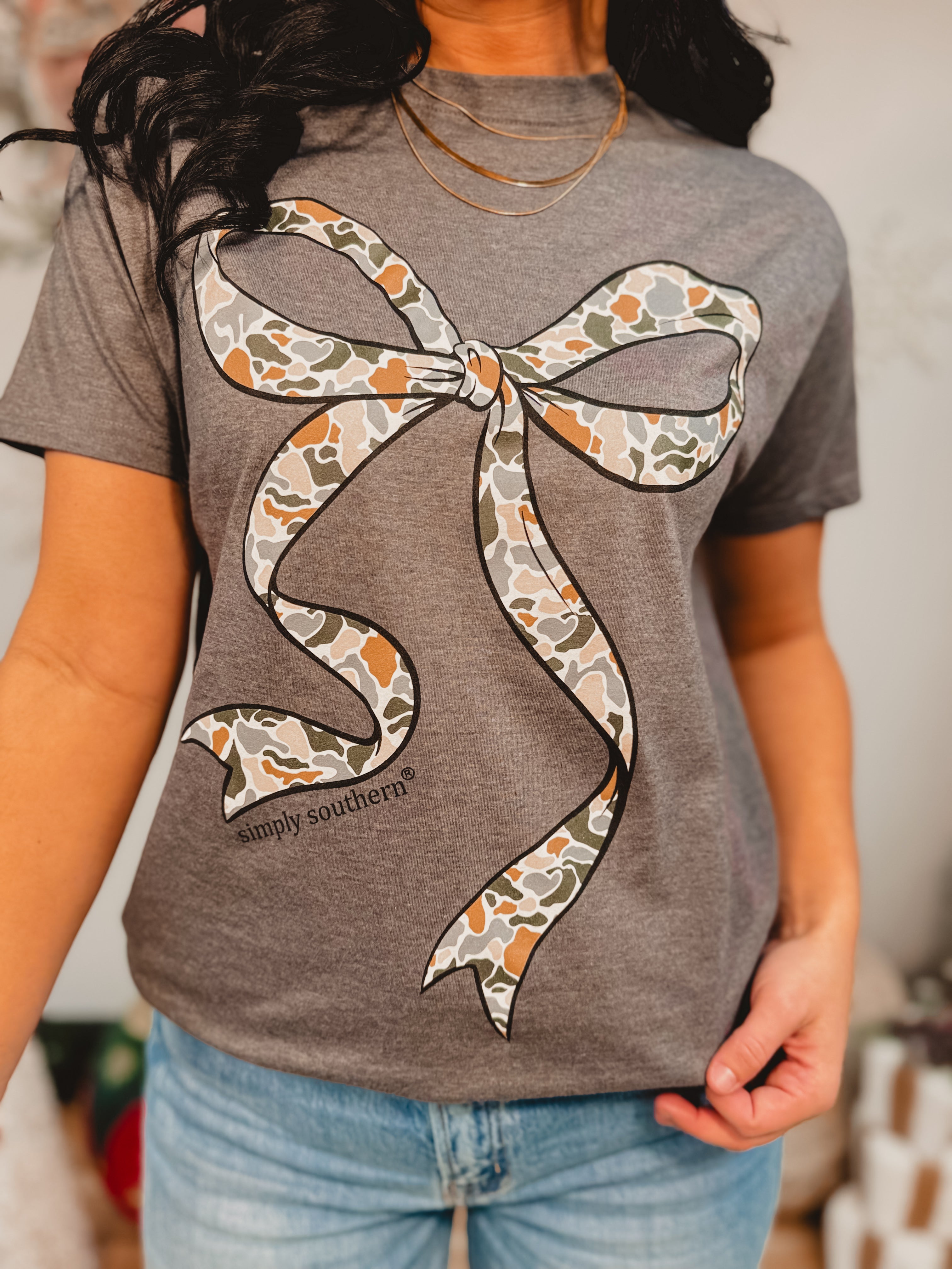 Stay outdoorsy and comfortable in this dark heather grey short sleeve tee featuring a camo ribbon design. Made from a soft cotton blend, it’s perfect for hunting season or casual everyday wear!