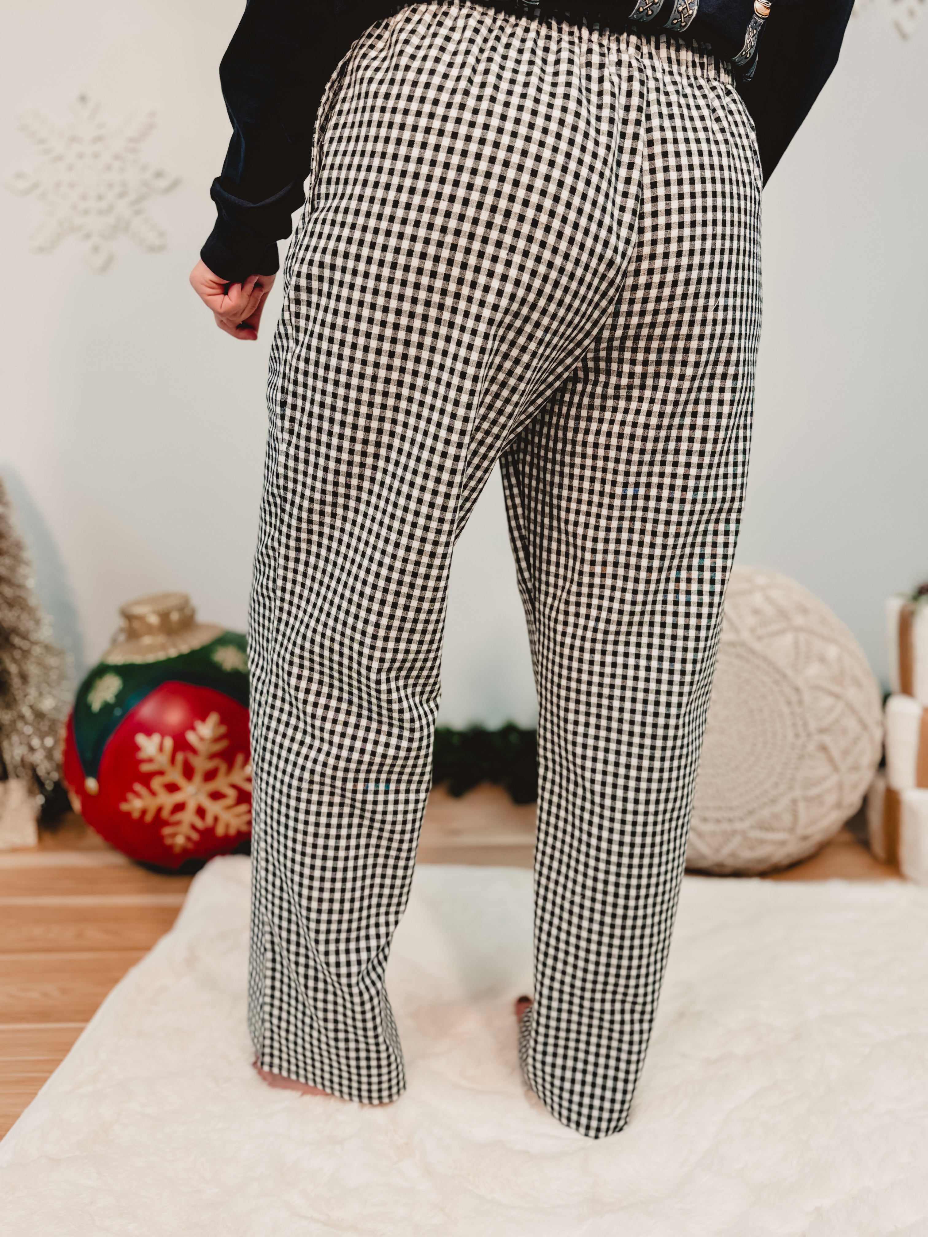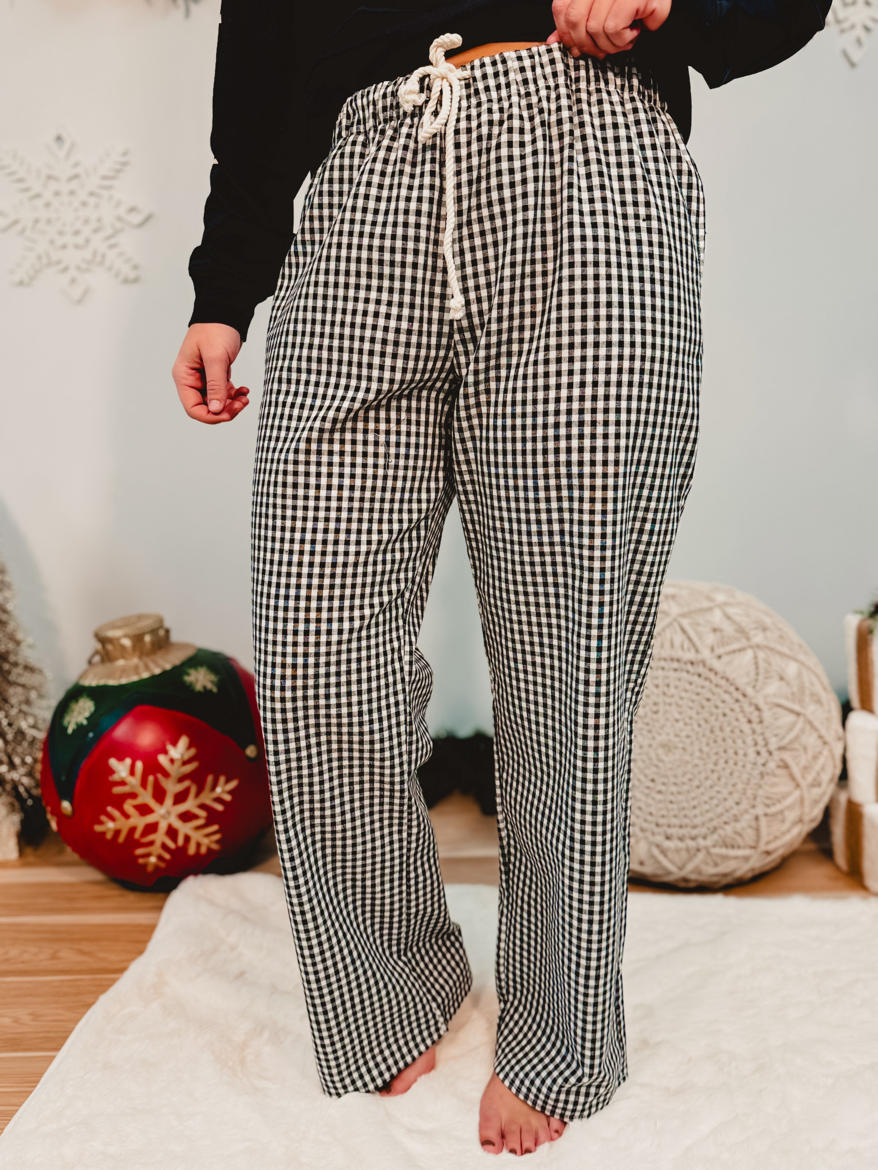 Cozy and timeless, these black gingham pajama pants add classic charm to your winter lounge wardrobe — and pair perfectly with your favorite holiday graphic tee for a cute and comfy festive fit!