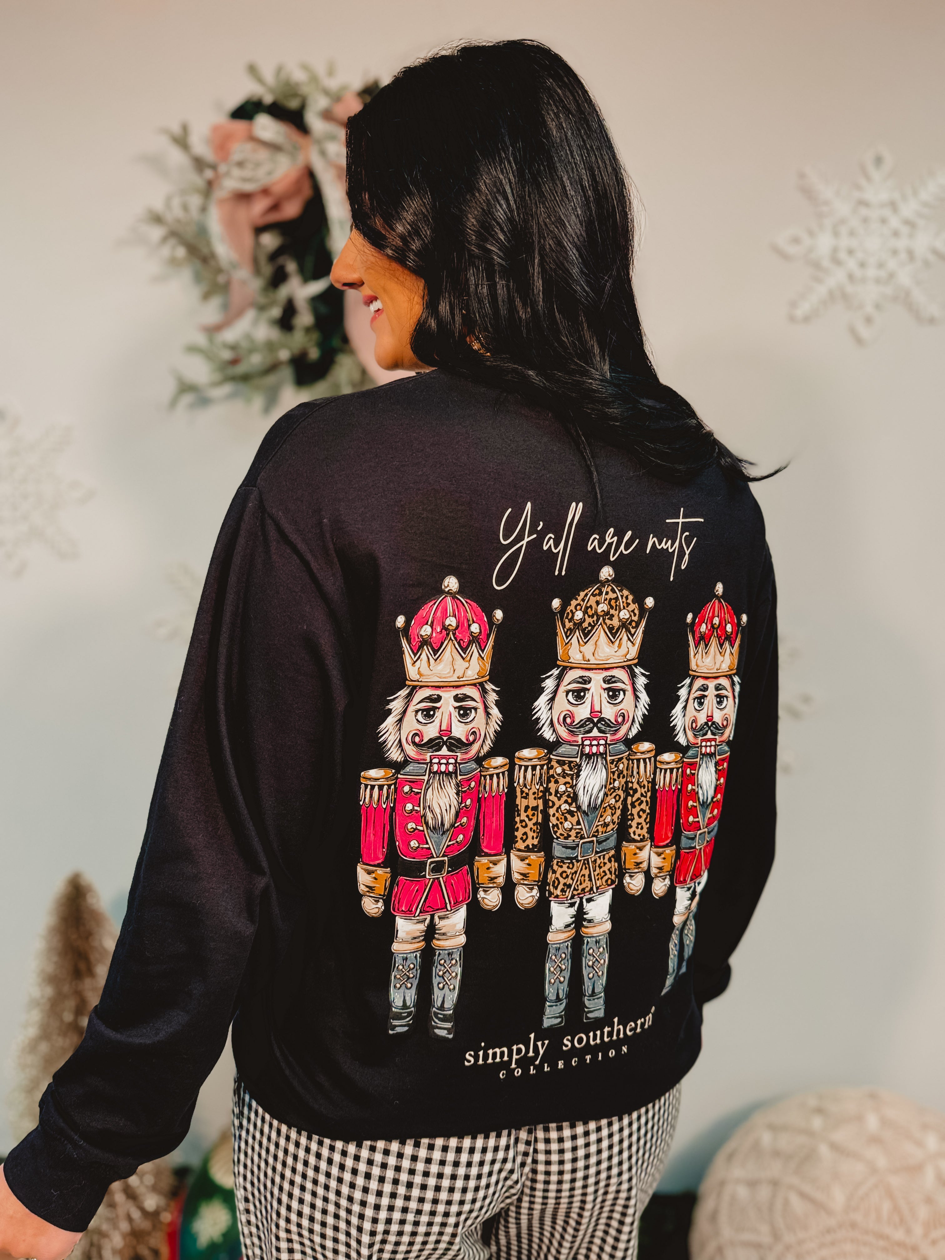 Bold and festive, this black Simply Southern long sleeve tee features a charming Nutcracker design, adding a playful touch of holiday magic to your cozy seasonal wardrobe!