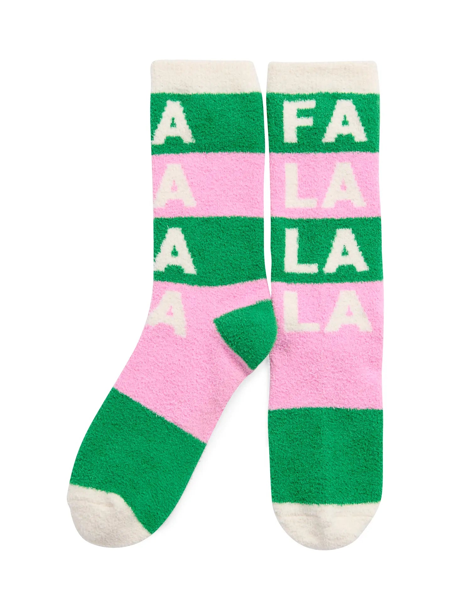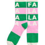 Step into the season with the cutest burst of holiday cheer in these soft and colorful “Fa La La La” cozy socks. With bright stripes and festive lettering, they’re made for merry lounging all month long.