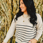 Striped Front Seam Detail Sweater - Khaki