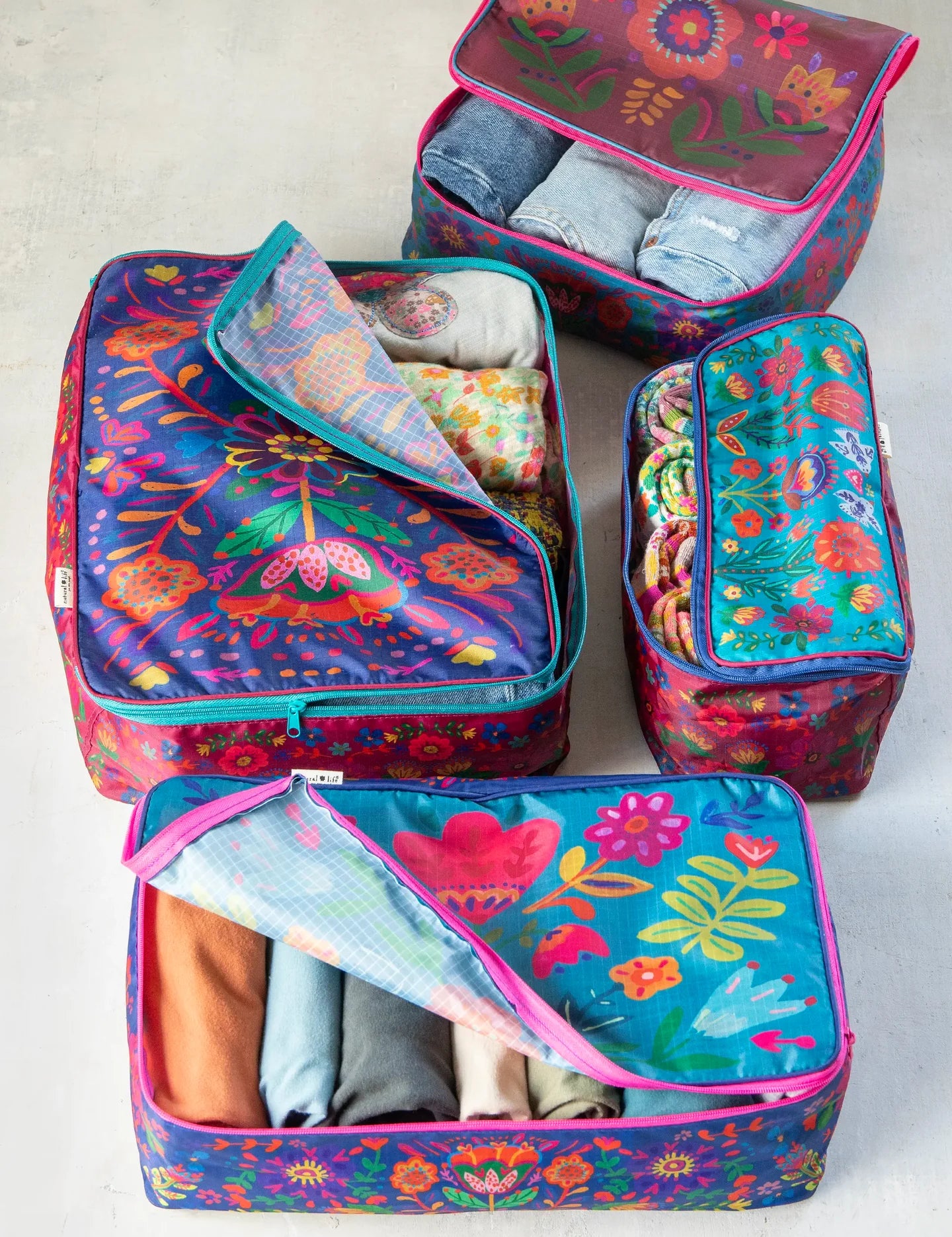 Natural Life Travel Packing Cubes, Set of 4 - Folk Flower
