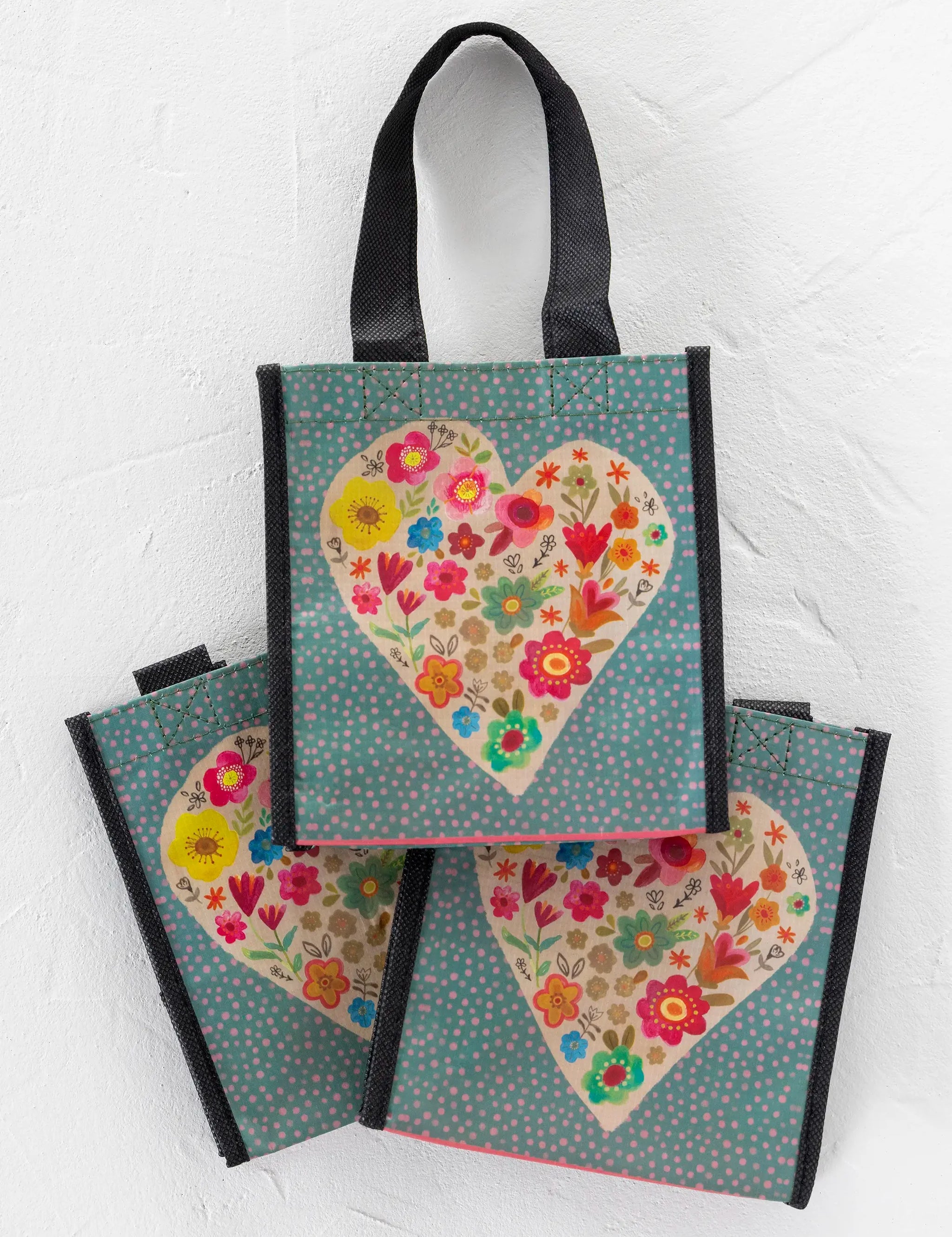 Natural Life Small Happy Bags, Set of 3 - Teal Heart