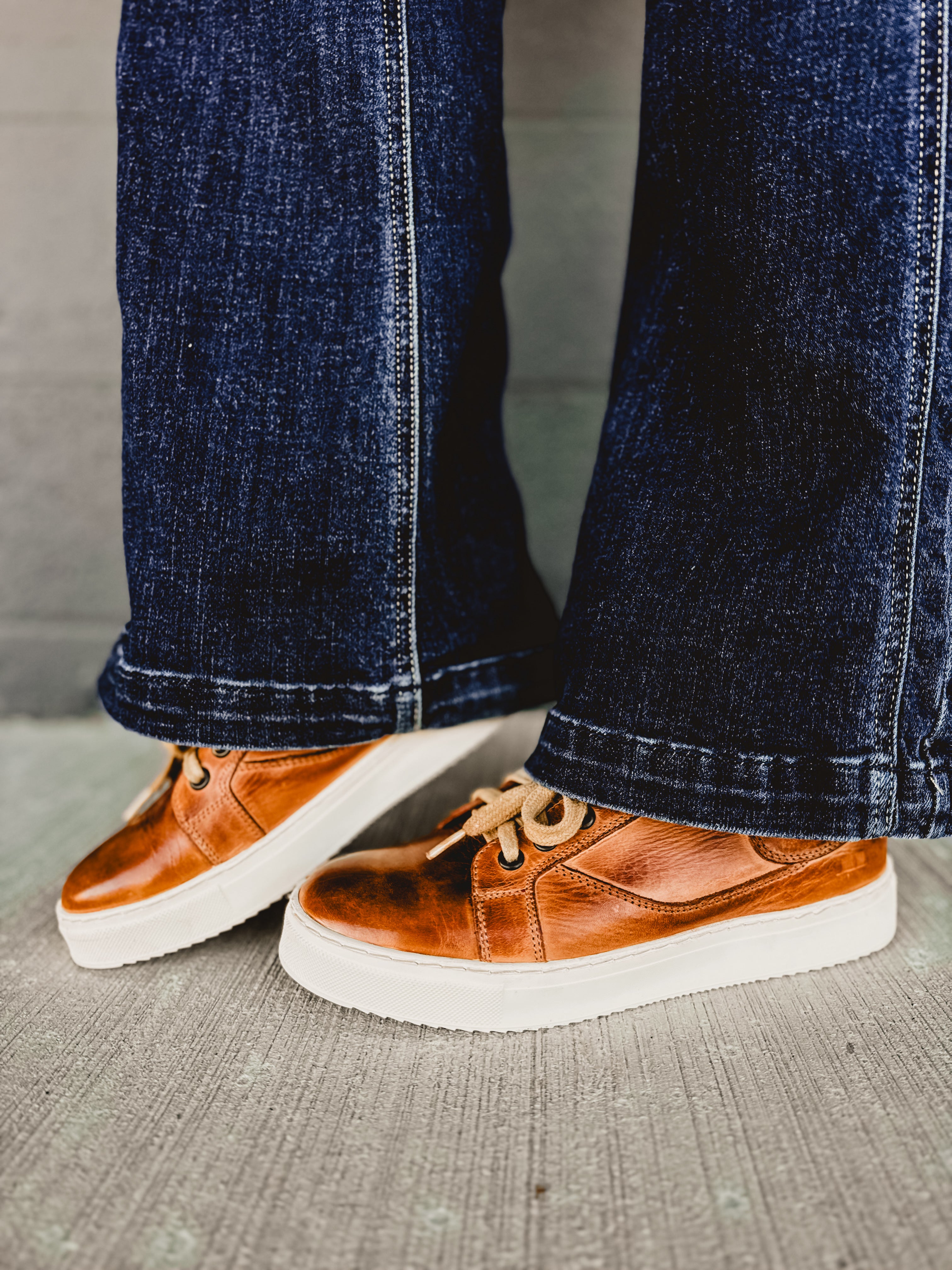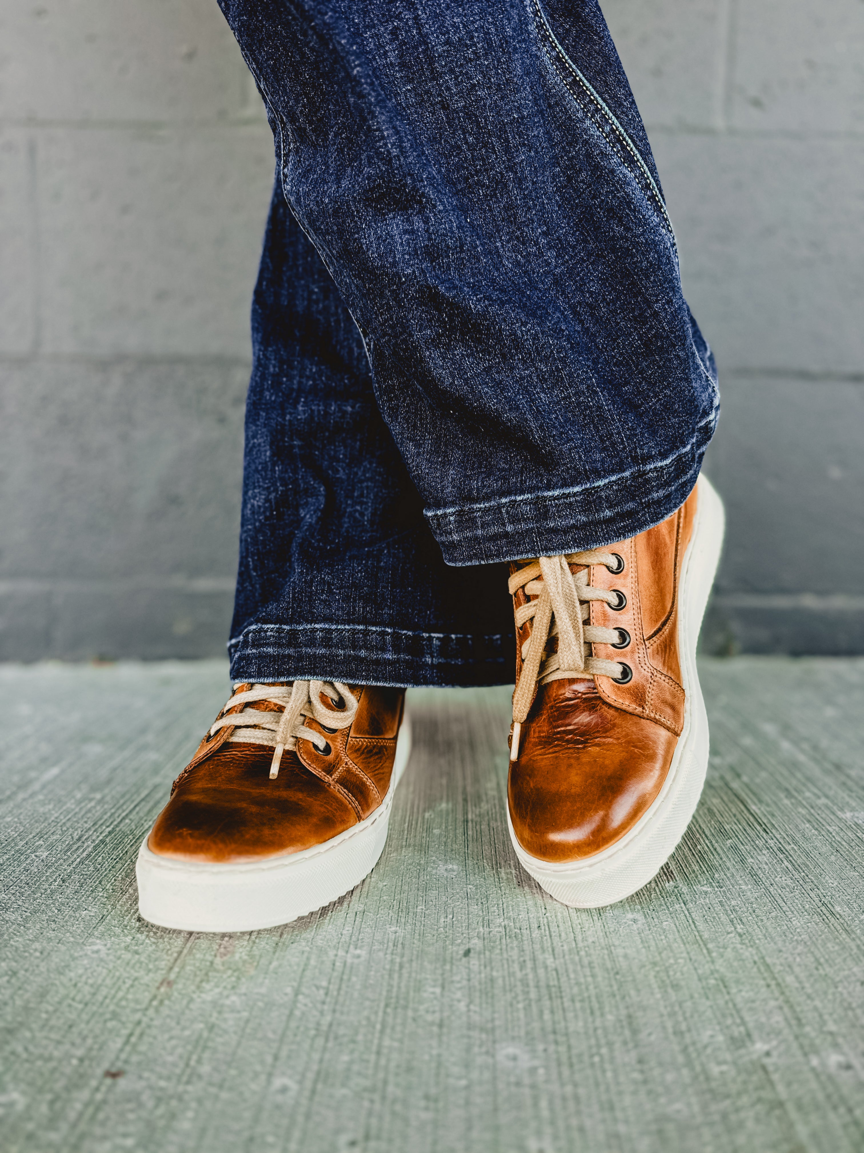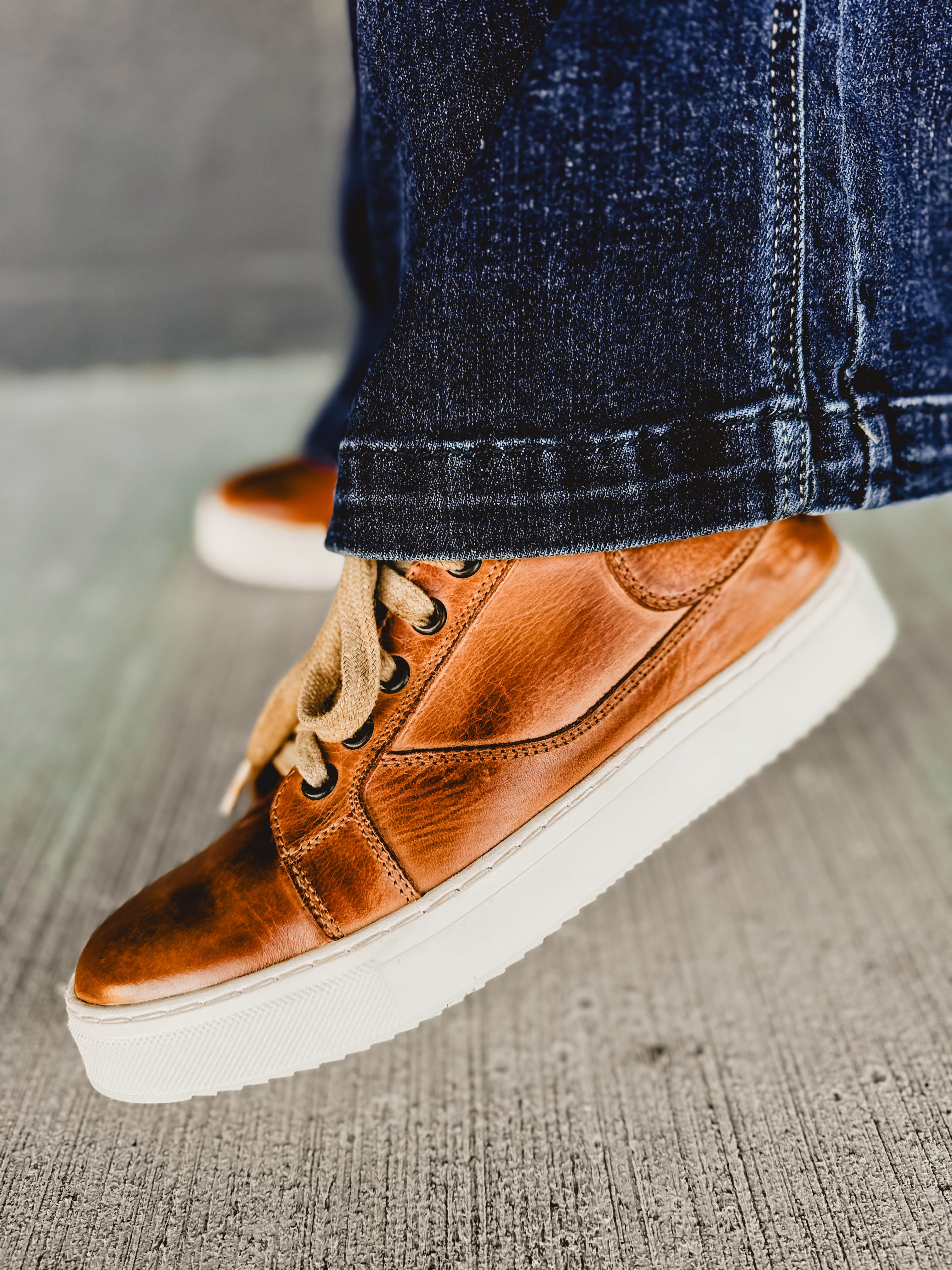 The Bedstu Azeli Sneaker in Tan Rustic offers timeless style with its sleek leather design, hand-stitched details, and durable white outsole for all-day comfort and versatility. Elevate your wardrobe effortlessly with this perfect blend of sophistication and everyday wearability.