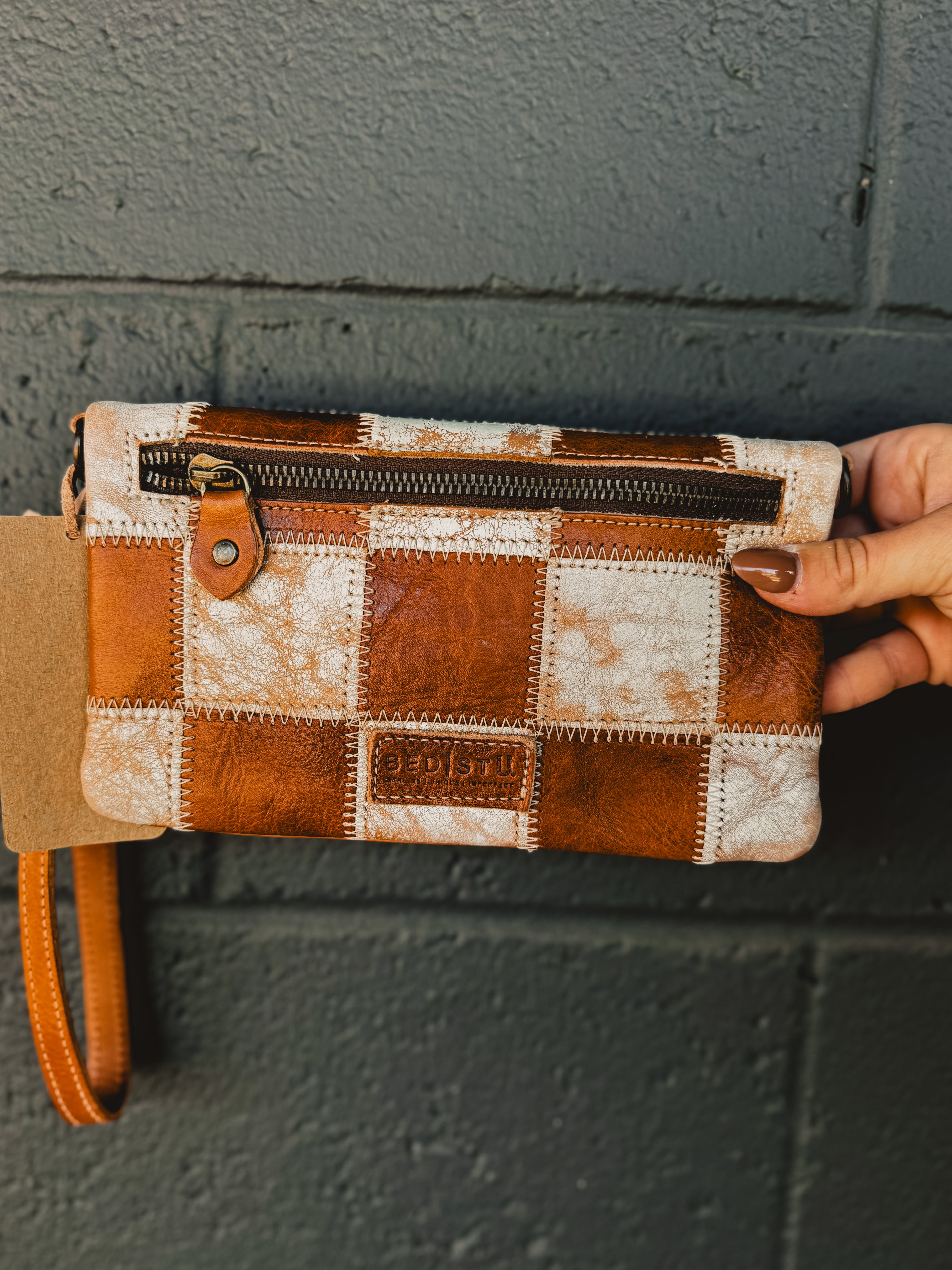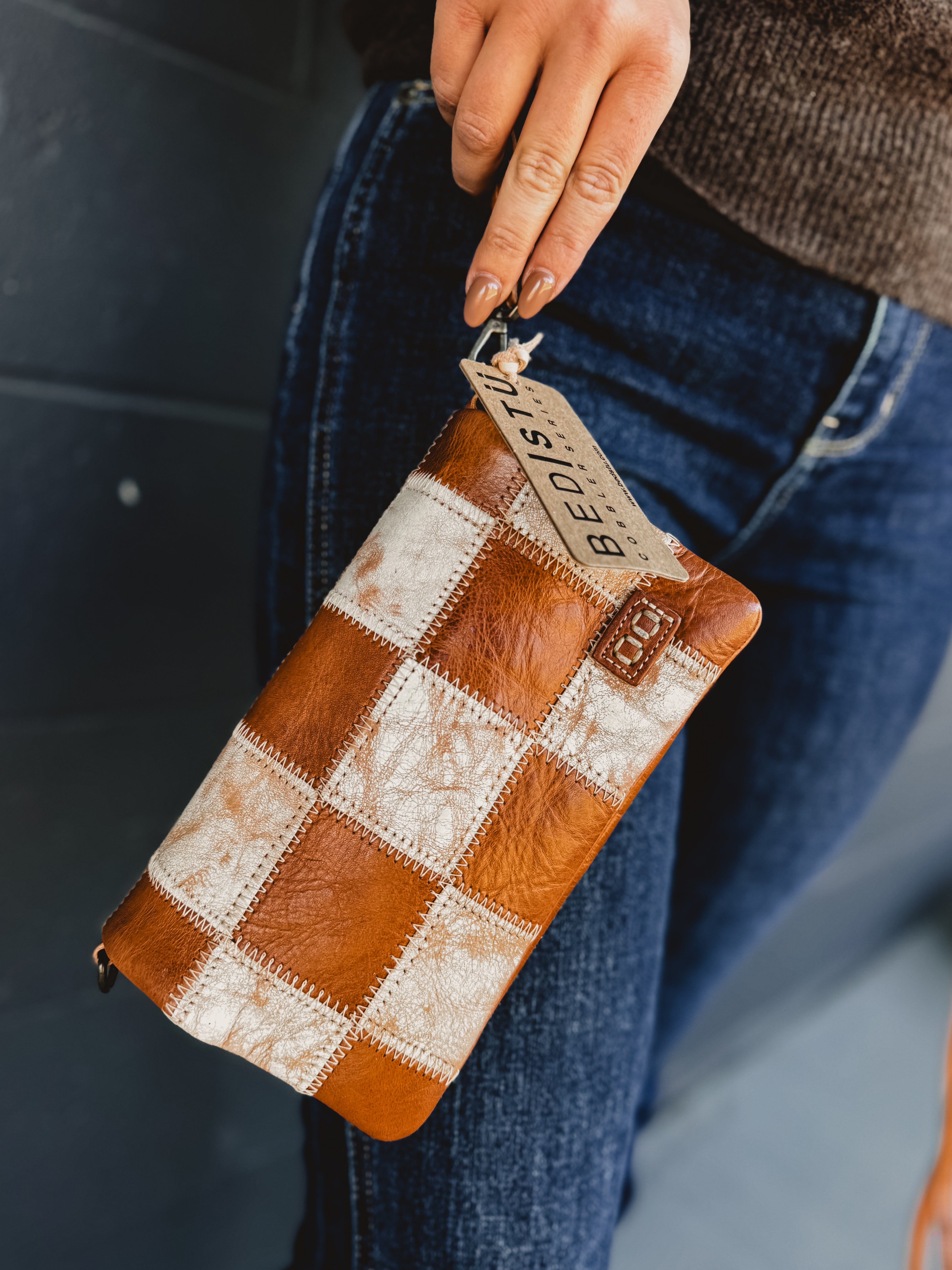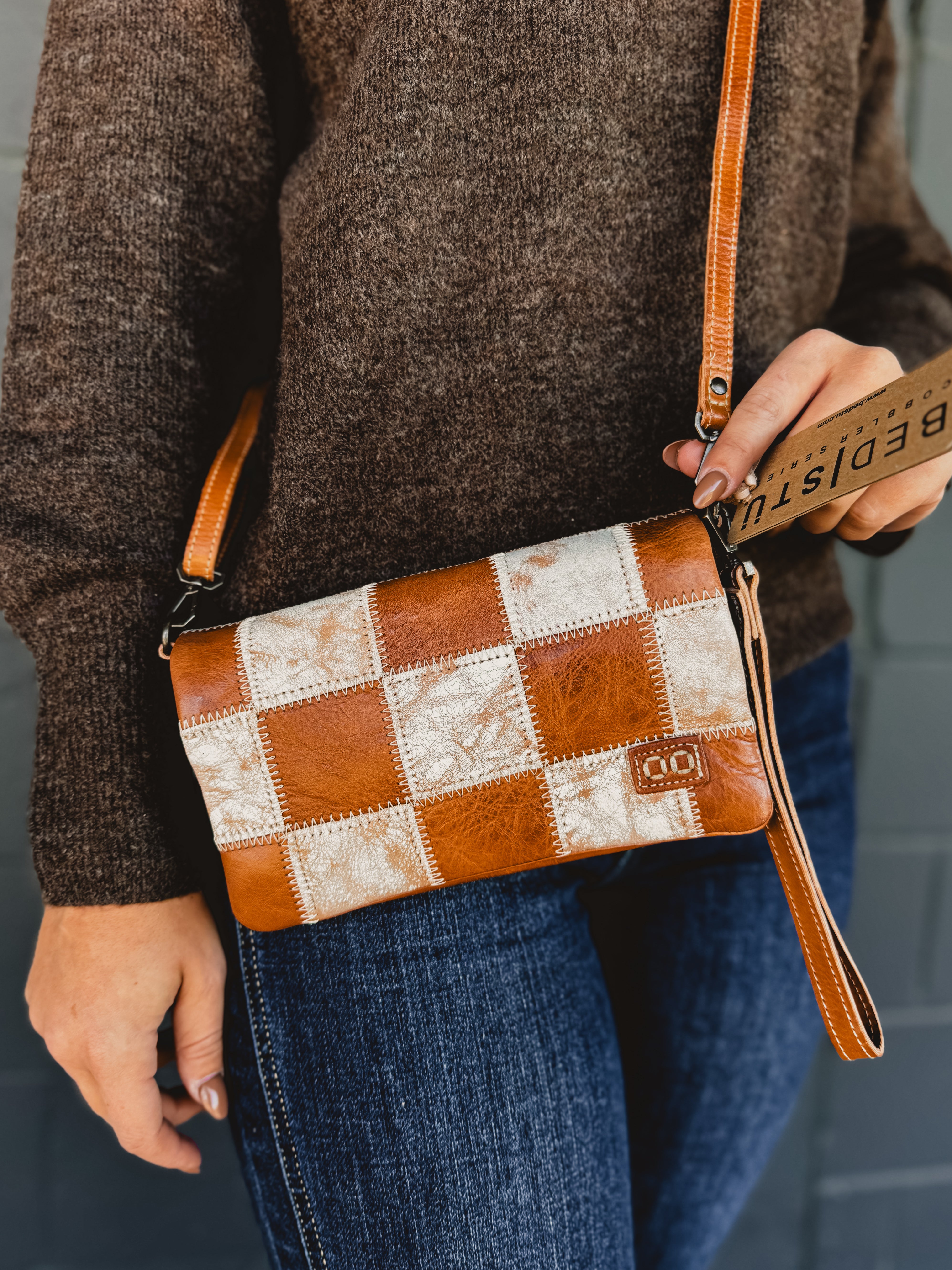 The Bedstu Cadence PW Crossbody in Tan Rustic Nectar Lux combines handcrafted patchwork luxury with versatile functionality, effortlessly transitioning from wallet to clutch or crossbody—ideal for stylish, organized days and nights on the go.