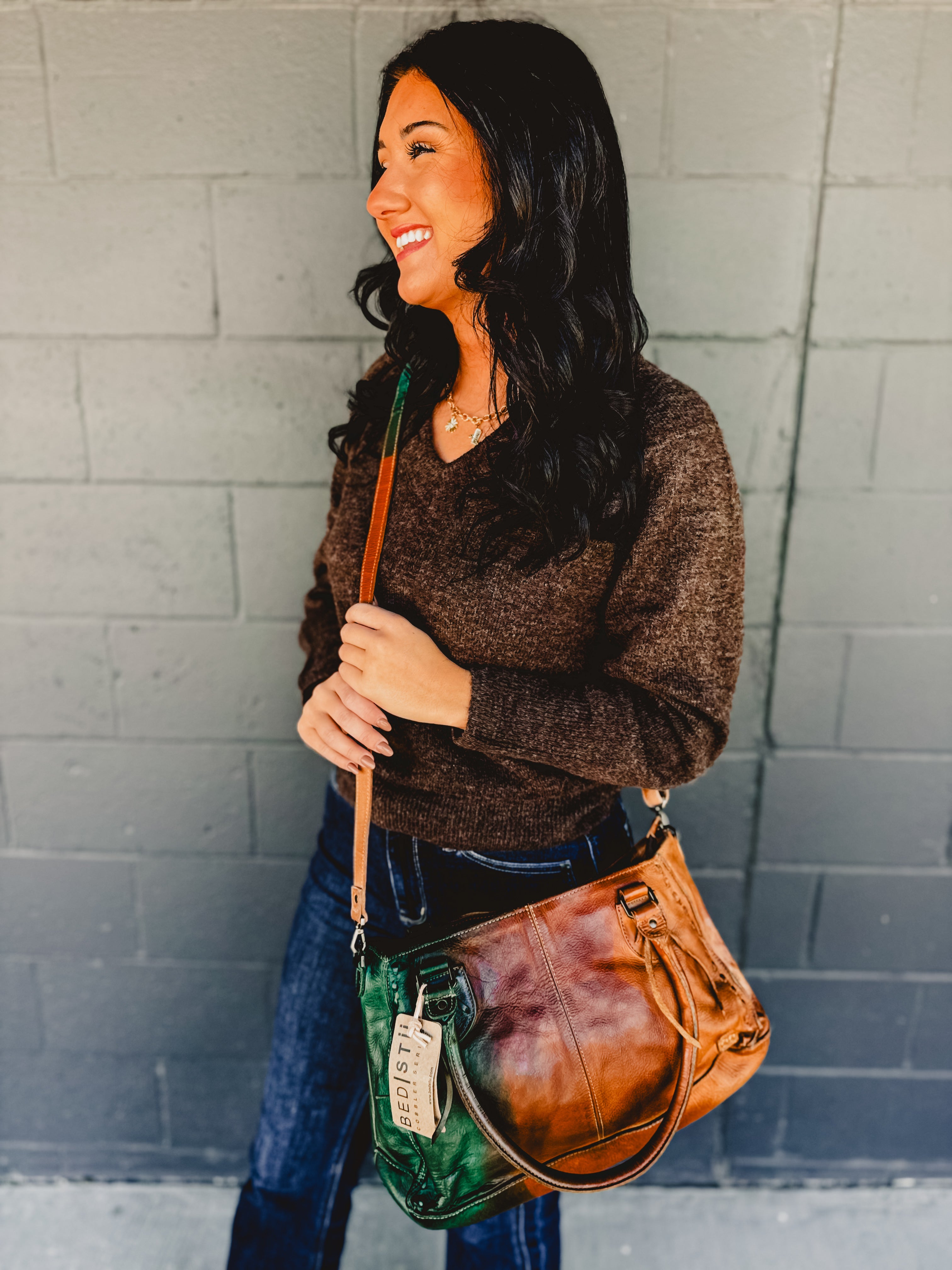 - 1 outer zipper pocket, 1 zipper pocket inside and 2 slip pockets, hidden slip phone pocket accessible when zipped closed