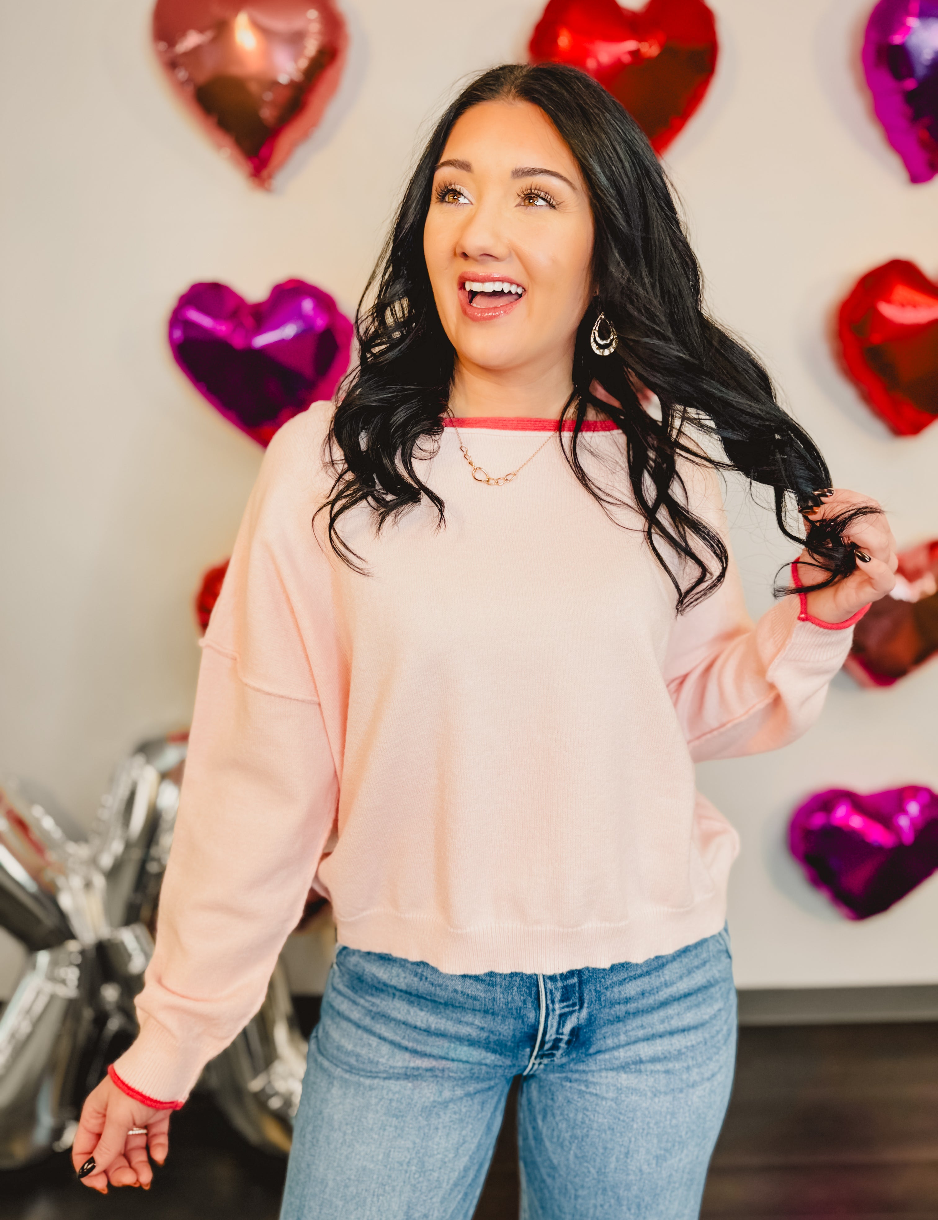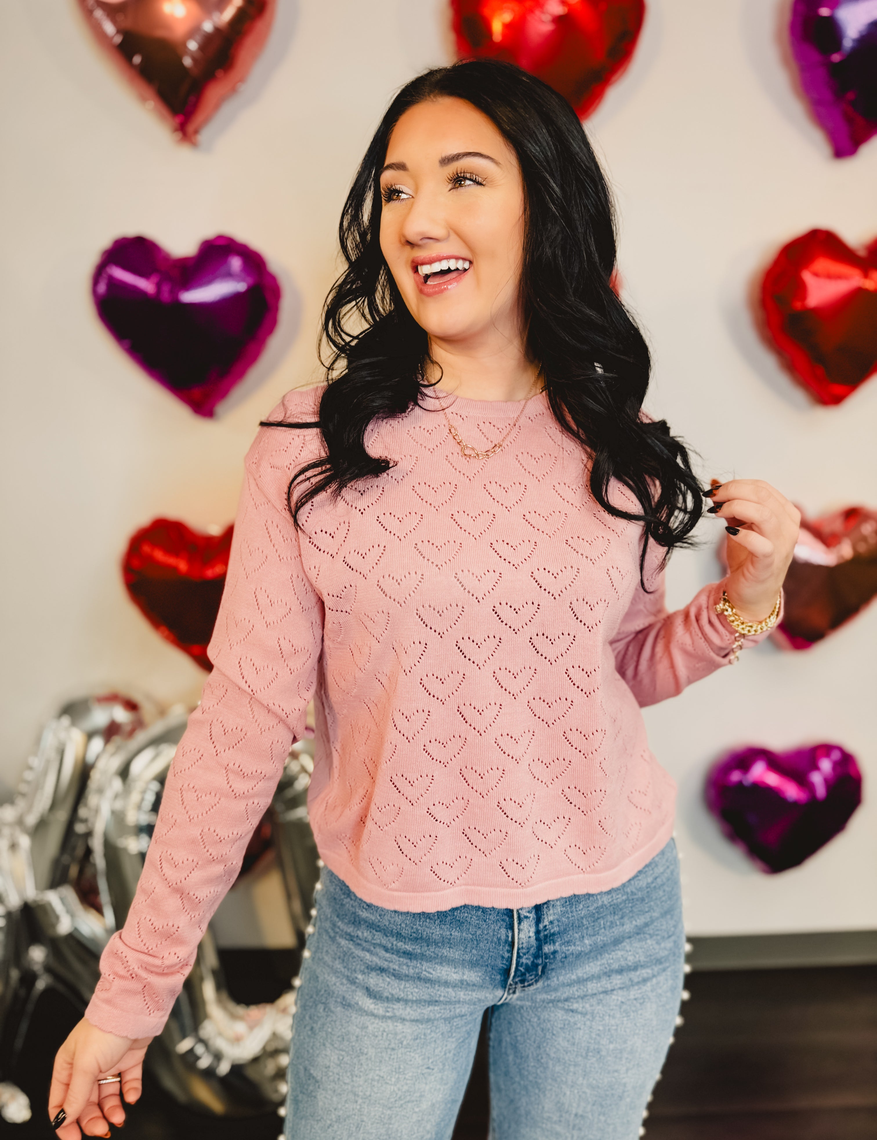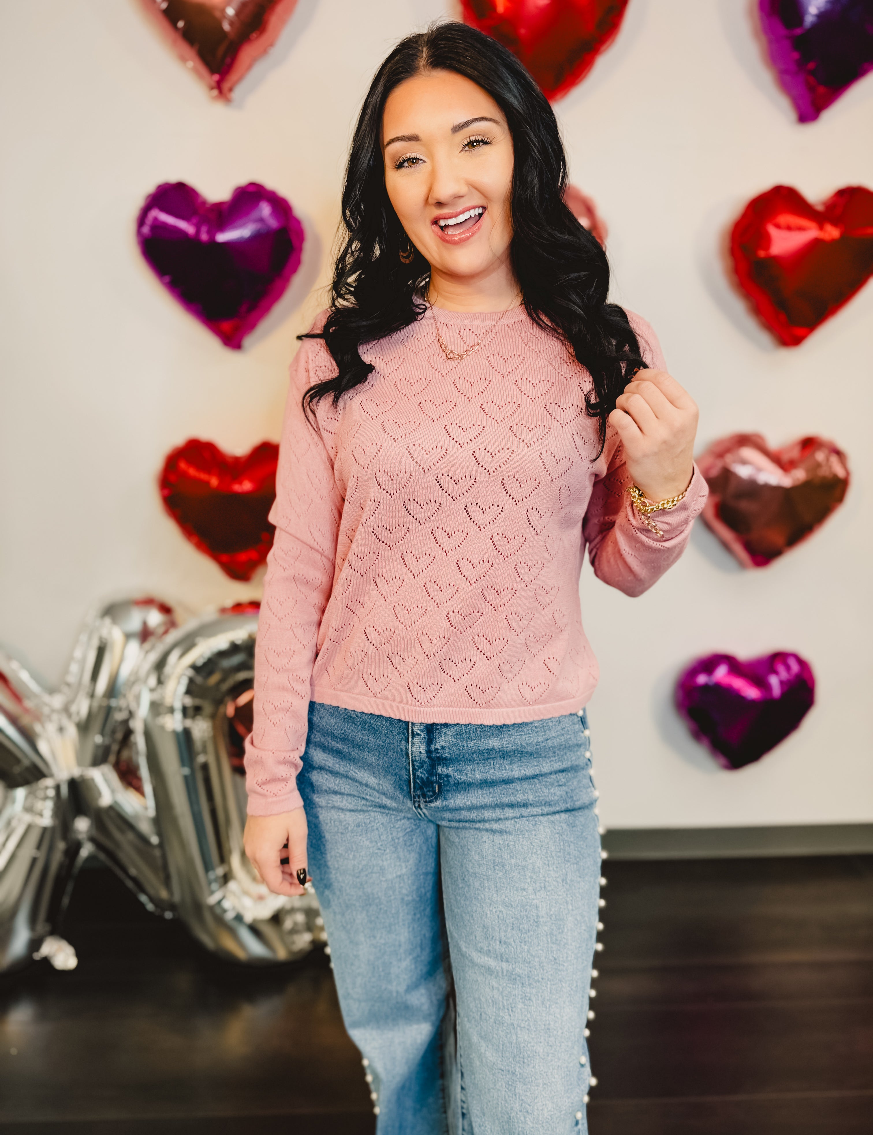 Heart Pointelle Scalloped Trim Sweater - Mauve