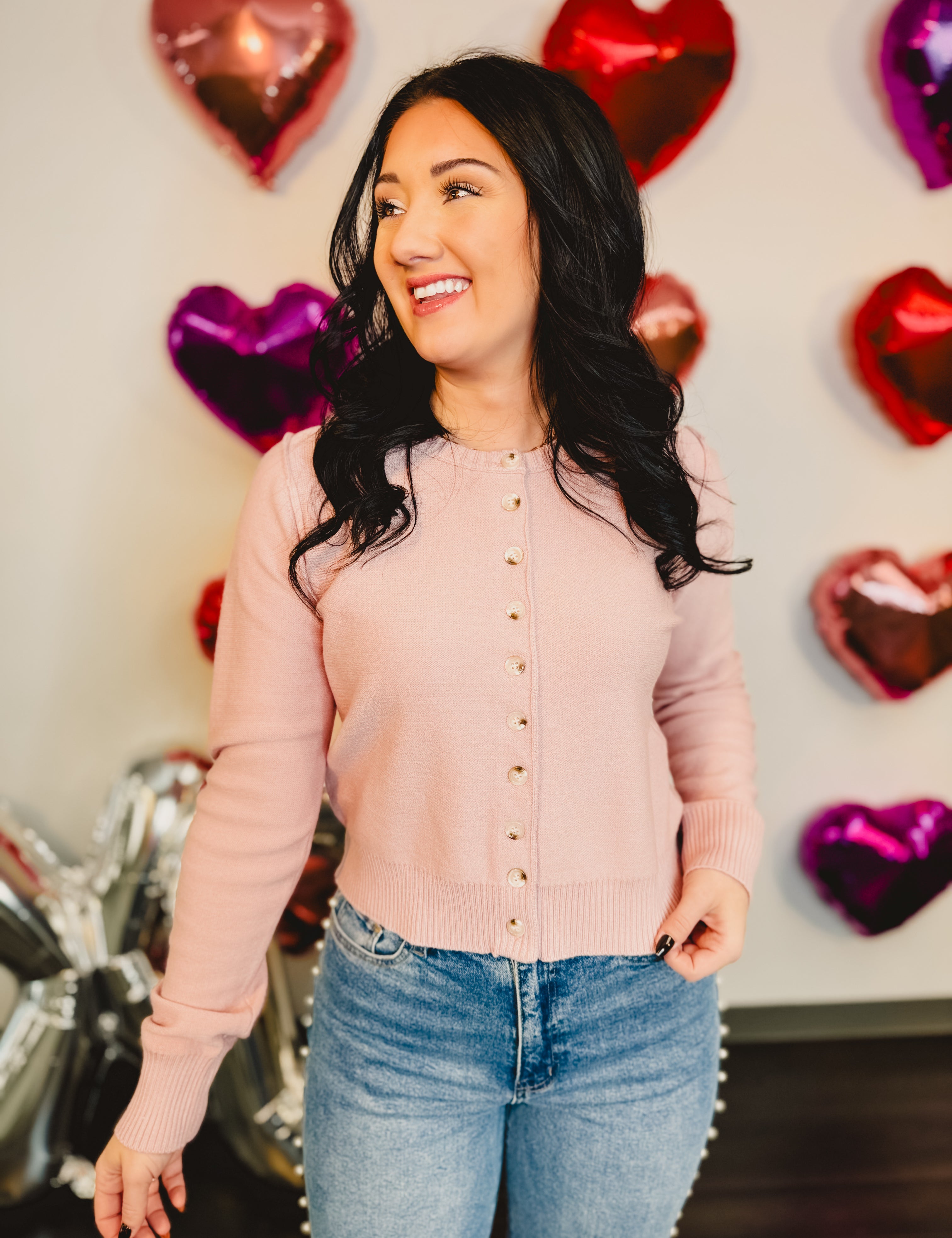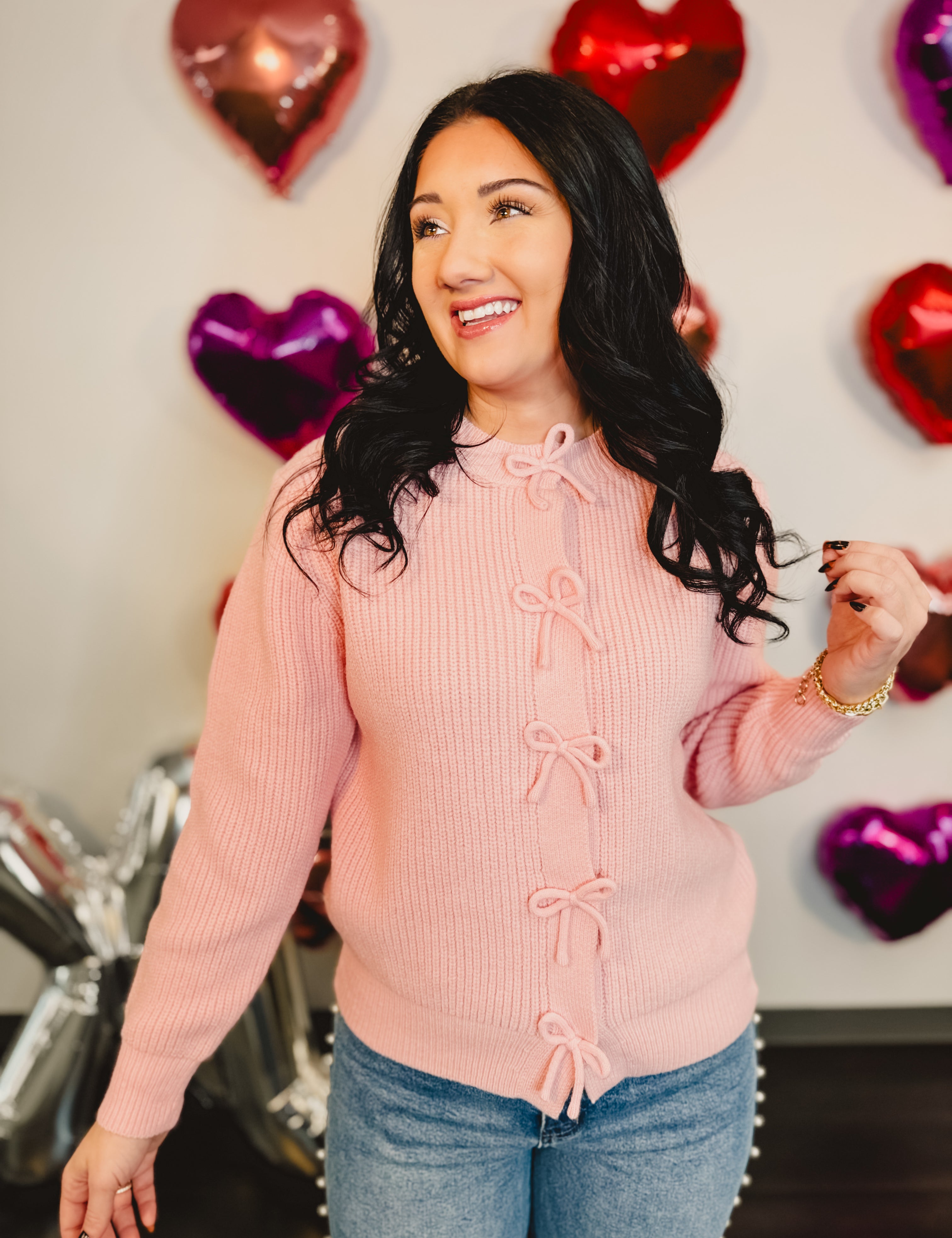 Bow Snap Button Detail Sweater Cardigan - Blush