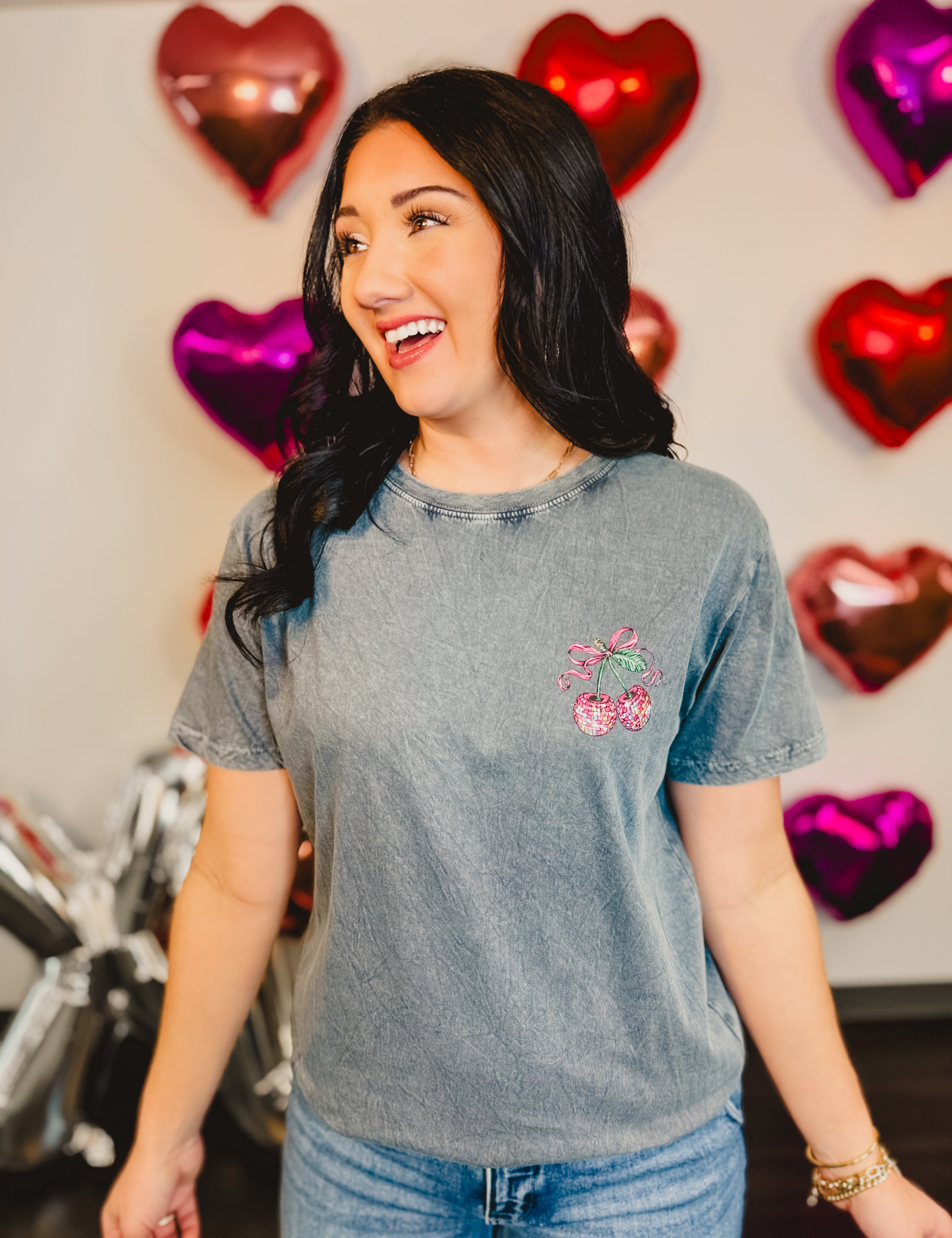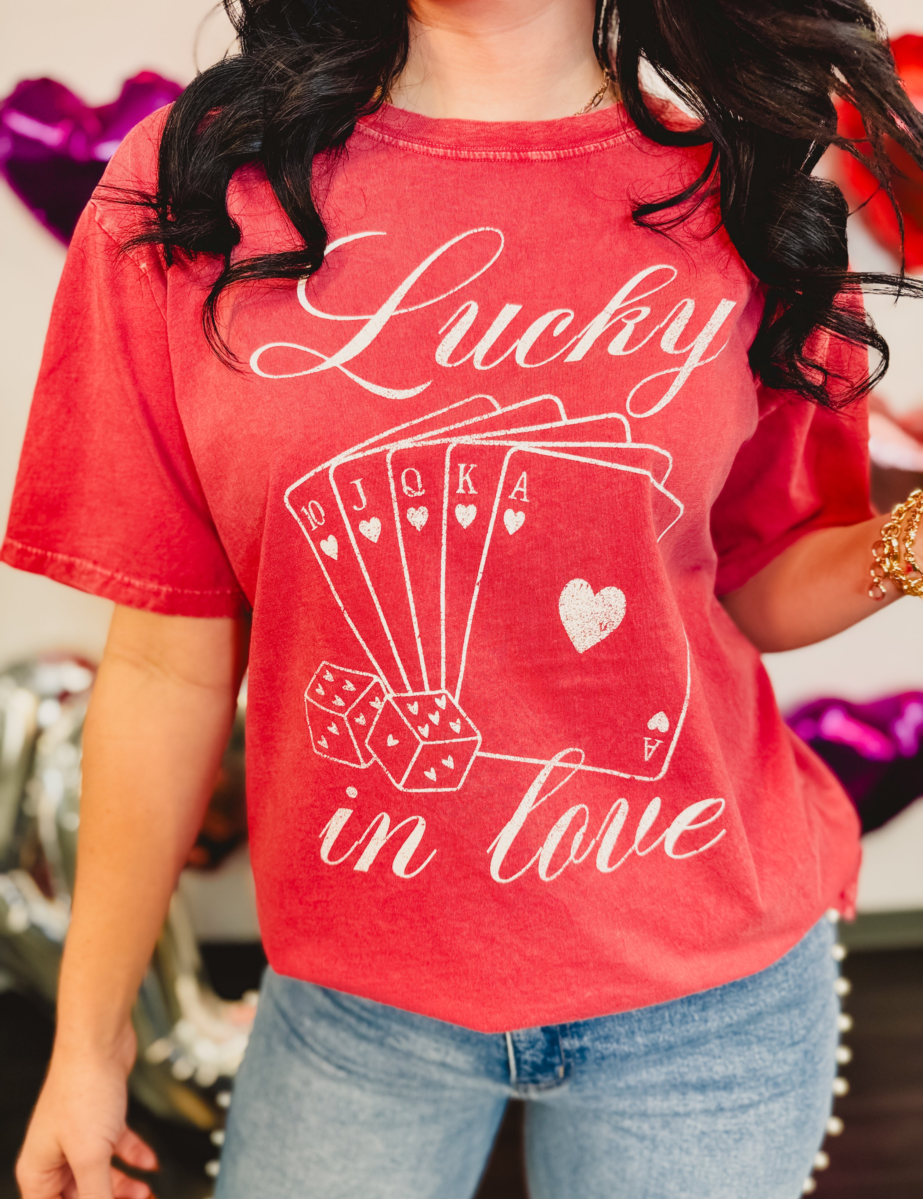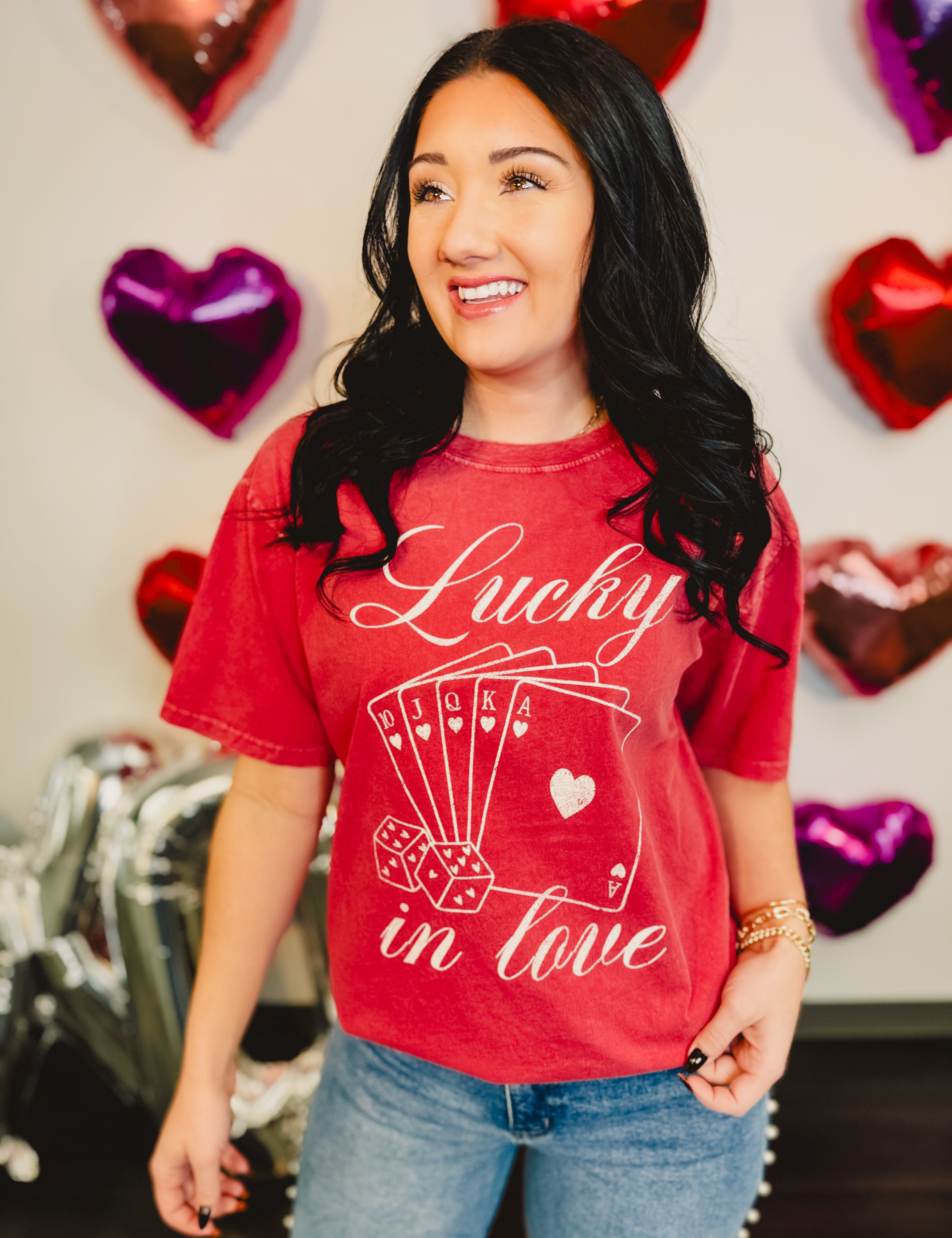 Lucky In Love Oversized Mineral Wash Tee - Vintage Red