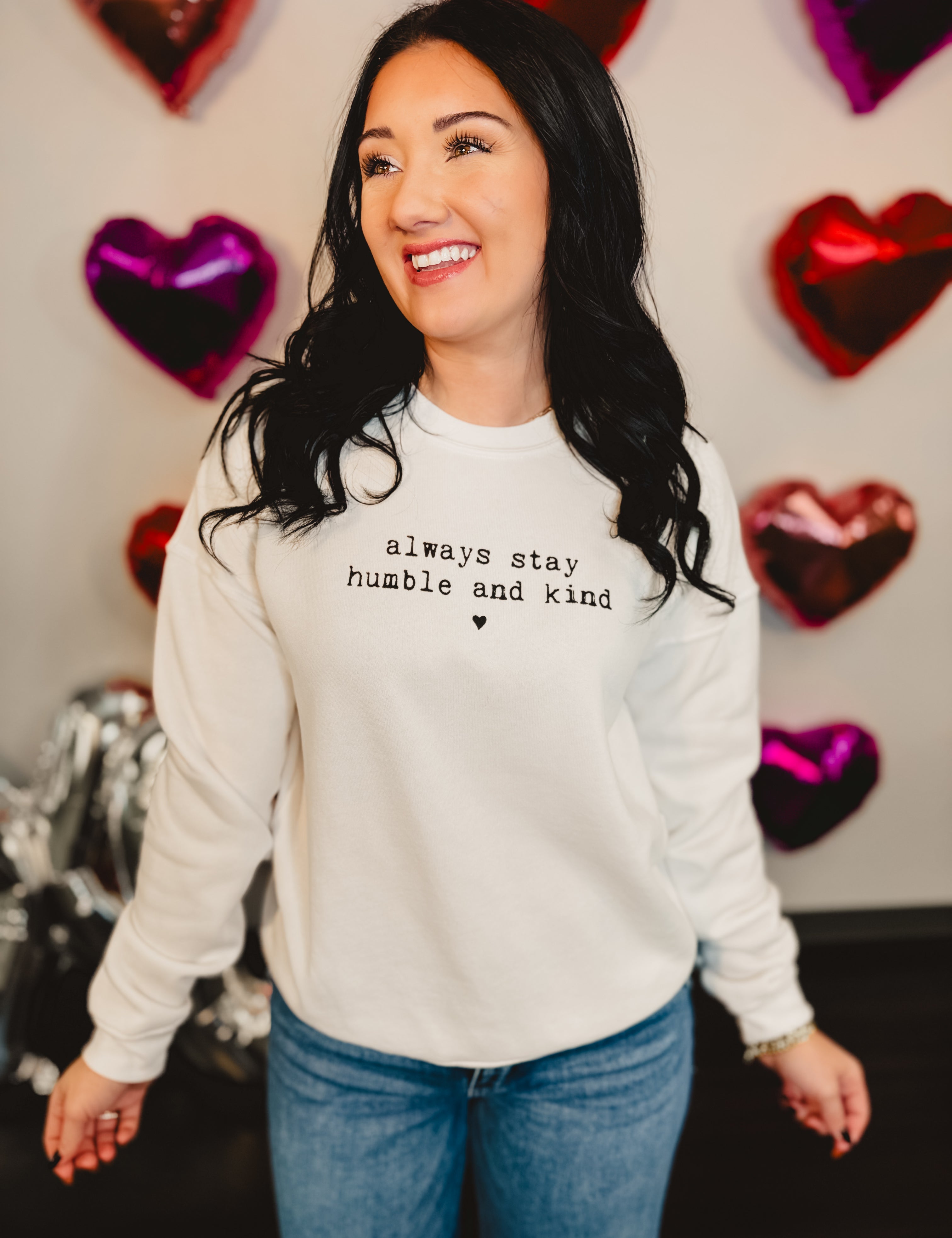 Always Stay Humble & Kind Mineral Wash Sweatshirt - White