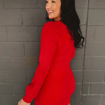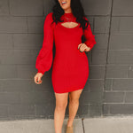 Cut-Out Detail Long Sleeve Sweater Mini Dress - Red
