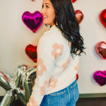 Floral Quarter Zip Knit Sweater - White/Pink